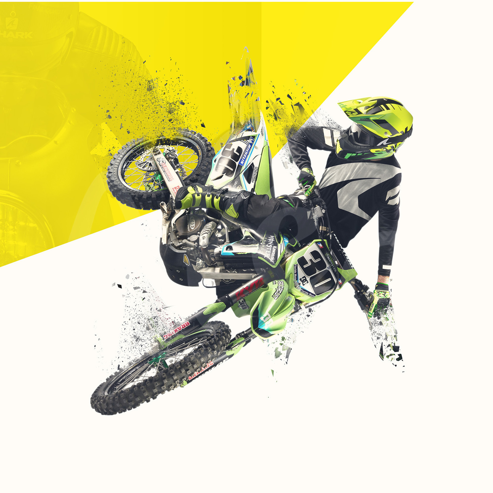 | Description | Photo de pub pour le casque de cross Varial de SHARK .Photo Dingo |
