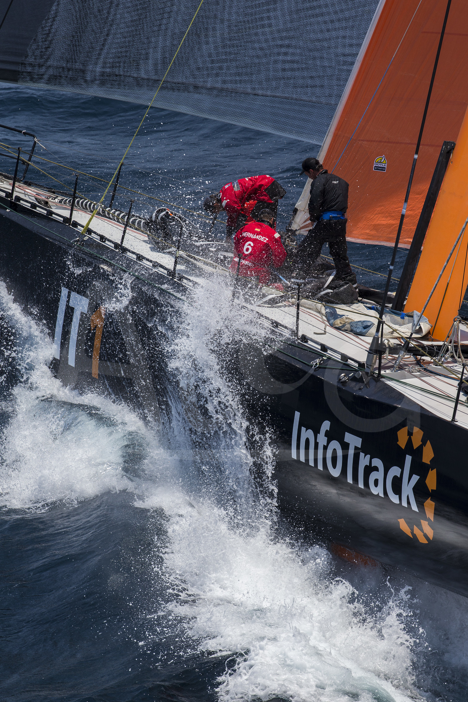 DescriptionSYDNEY, AUSTRALIA - DECEMBER 26: Maxi yacht InfoTrack takes the start during the 2019 Sydney to Hobart race on Sydney Harbour on December 26, 2019 in Sydney, Australia. (Photo by Andrea Francolini/Alea)
