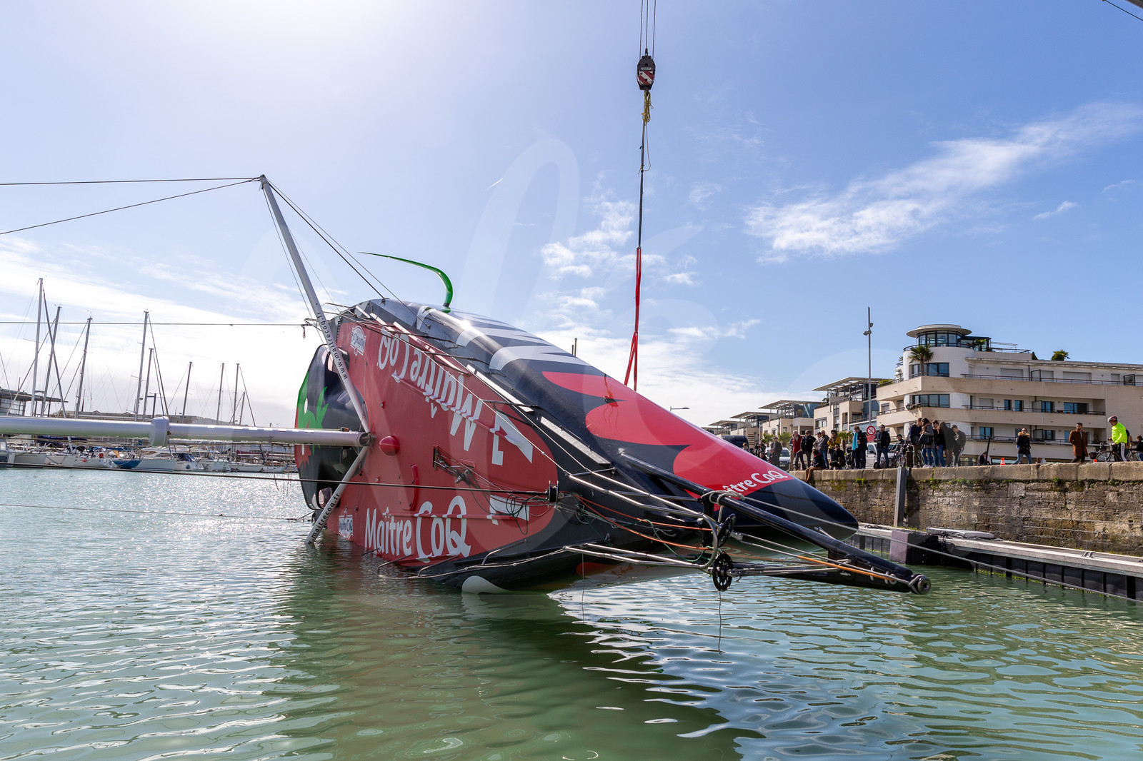 | Description | LA ROCHELLE, FRANCE - MARCH 13: Imoca boat Maitre Coq is having a straightening test powered by a crane, on March 13, 2020, in La Rochelle, France. (Photo by Jean-Marie Liot/Alea) |