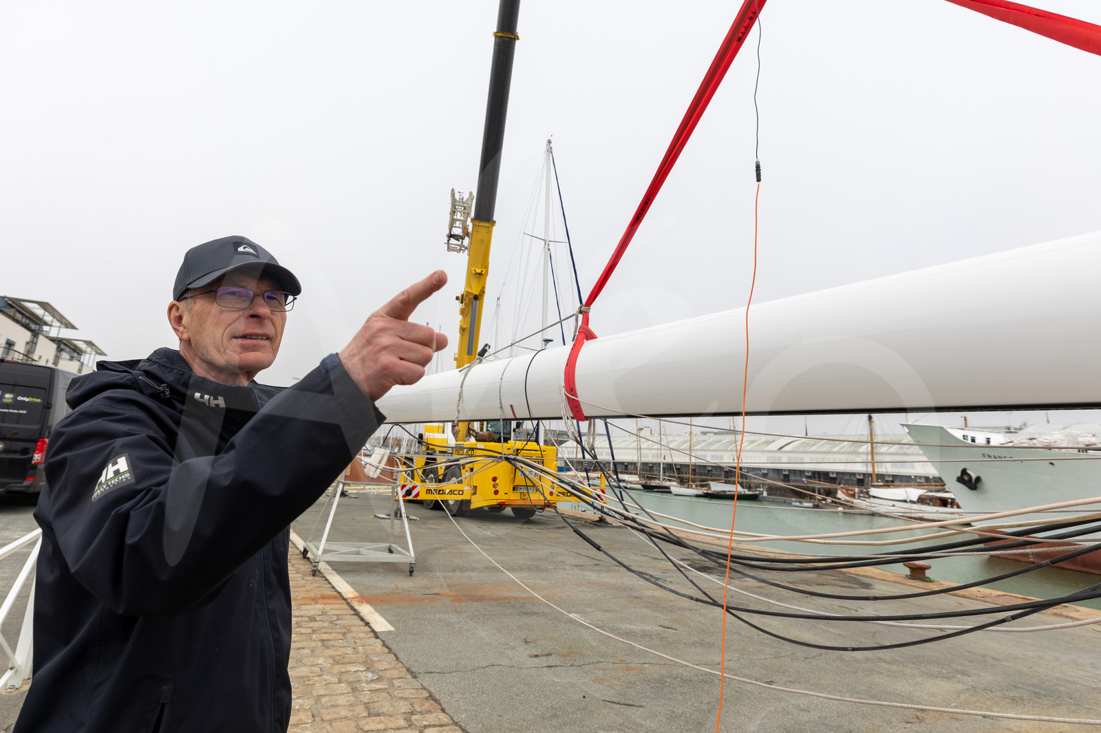 | Description | LA ROCHELLE, FRANCE - MARCH 11: Sailing engineer Rene Boulaire is verifying Imoca boat Maitre Coq before her launching, on March 11, 2020, in La Rochelle, France. (Photo by Jean-Marie Liot/Alea) |