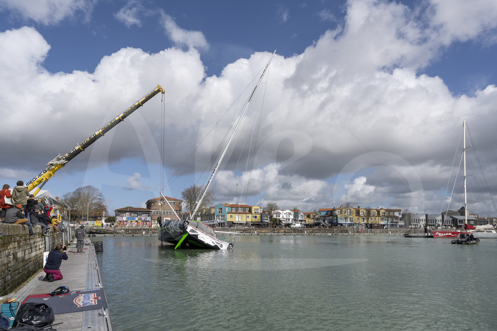 | Description | LA ROCHELLE, FRANCE - MARCH 13: The Imoca boat Maitre Coq, skipper Yannick Bestaven, is having a straightening test powered by a crane before her launching, on March 13, 2020, in La Rochelle, France. (Photo by Olivier Blanchet/Alea) |