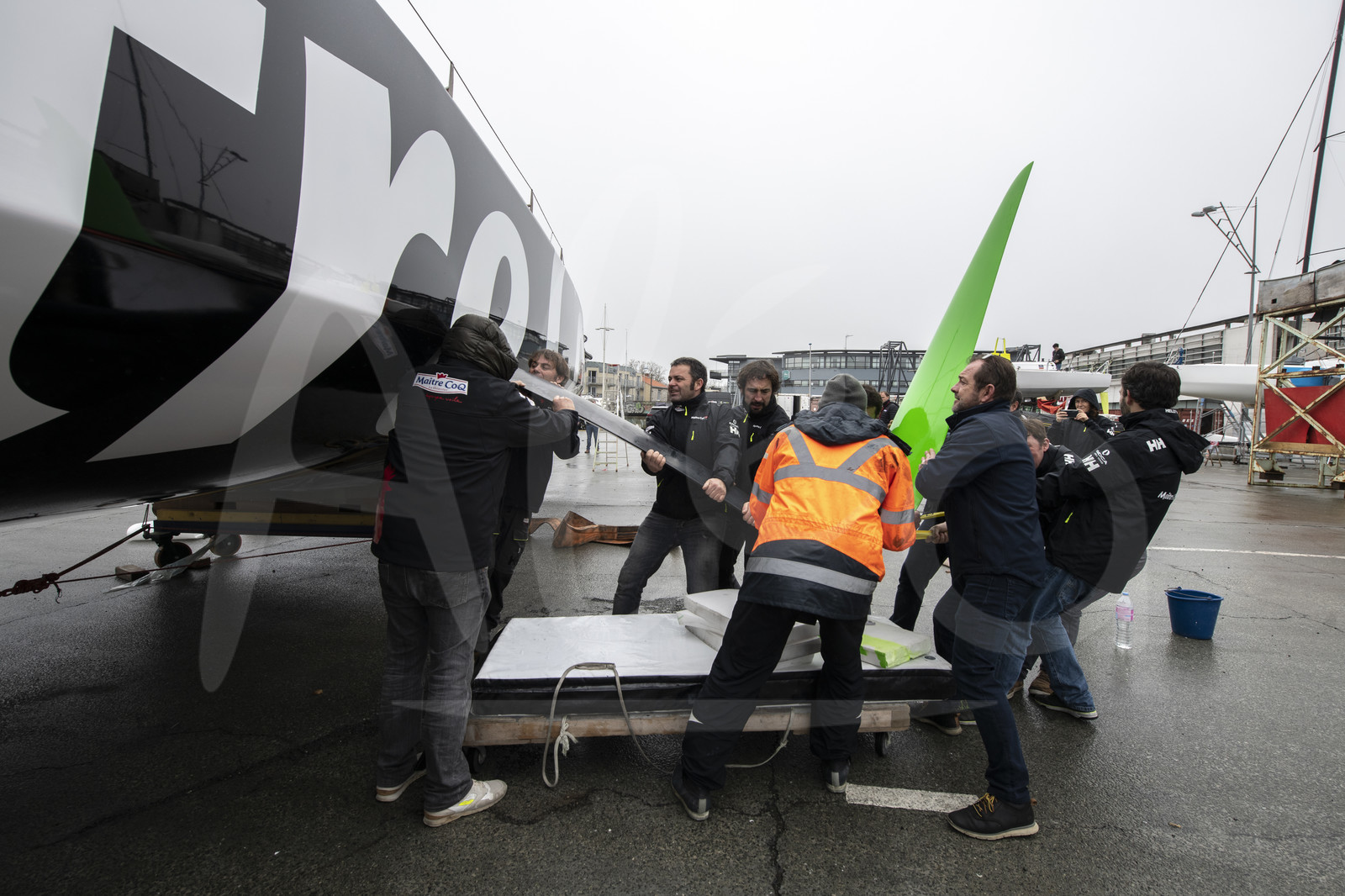 | Description | LA ROCHELLE, FRANCE - MARCH 11: The Imoca boat Maitre Coq is being prepared by skipper Yannick Bestaven and his crew before her launching, on March 11, 2020, in La Rochelle, France. (Photo by Olivier Blanchet/Alea) |