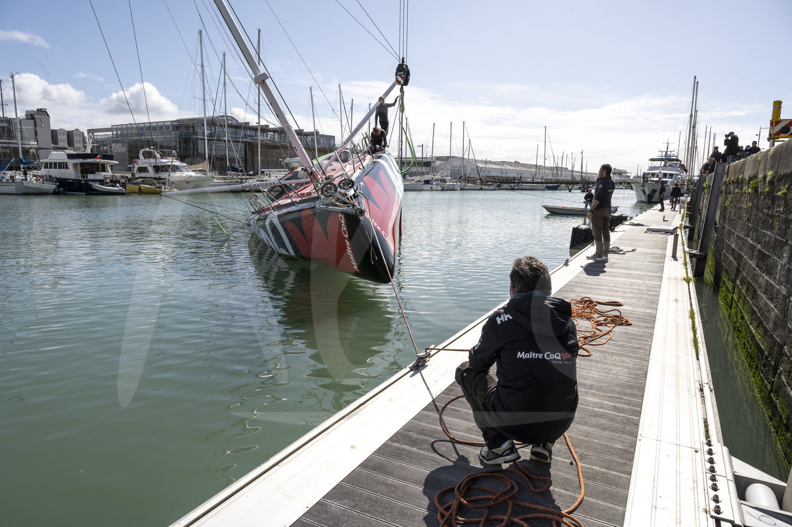 | Description | LA ROCHELLE, FRANCE - MARCH 13: The Imoca boat Maitre Coq, skipper Yannick Bestaven, is having a straightening test powered by a crane before her launching, on March 13, 2020, in La Rochelle, France. (Photo by Olivier Blanchet/Alea) |