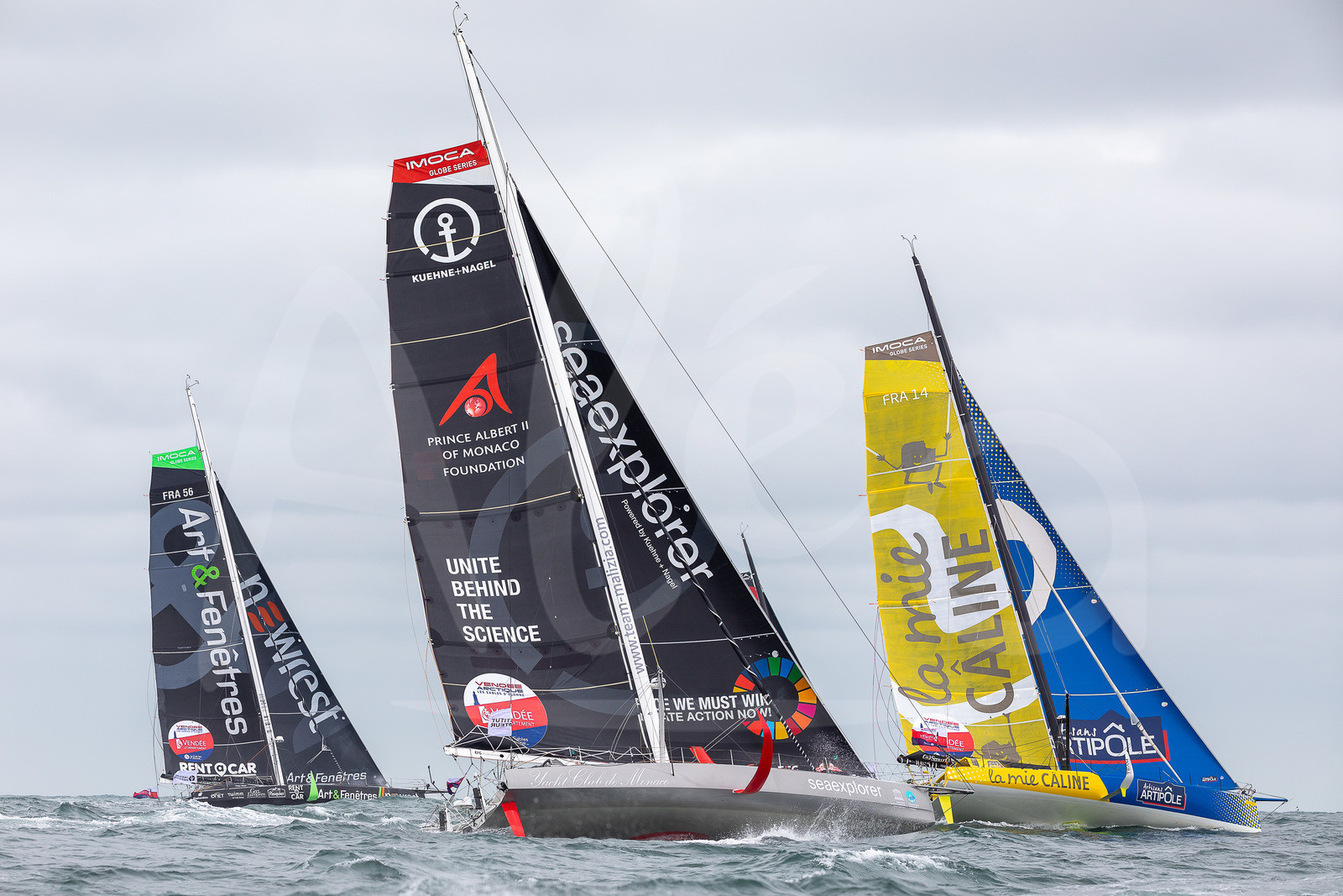 | Description | LES SABLES D'OLONNE, FRANCE - JULY 4: Sea Explorer - YC de Monaco, Newrest - Art et Fenetres and La Mie Caline - Artisans Artipole are taking the start of the Vendee Arctique solo sailing race, off Les Sables d'Olonne, France, on July 4, 2020. (Photo by Jean-Marie Liot/Alea) |