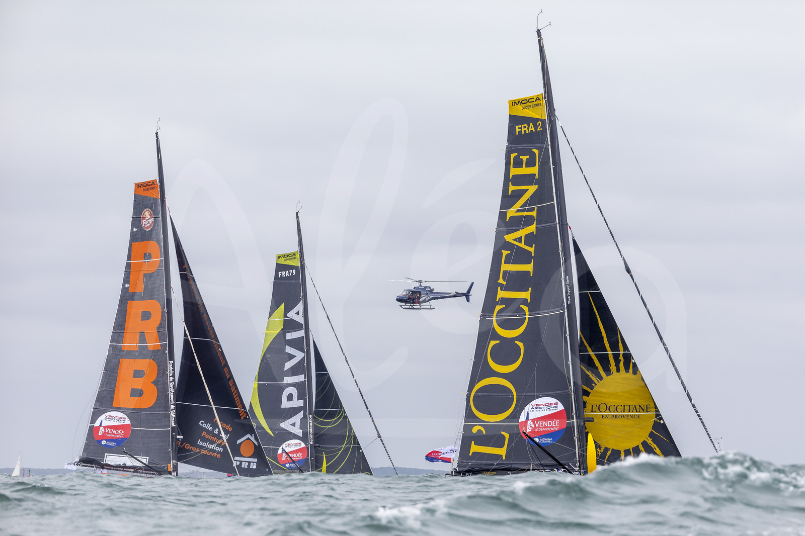 | Description | LES SABLES D'OLONNE, FRANCE - JULY 4: L'Occitane en Provence, PRB and Apivia are taking the start of the Vendee Arctique solo sailing race, off Les Sables d'Olonne, France, on July 4, 2020. (Photo by Jean-Marie Liot/Alea) |