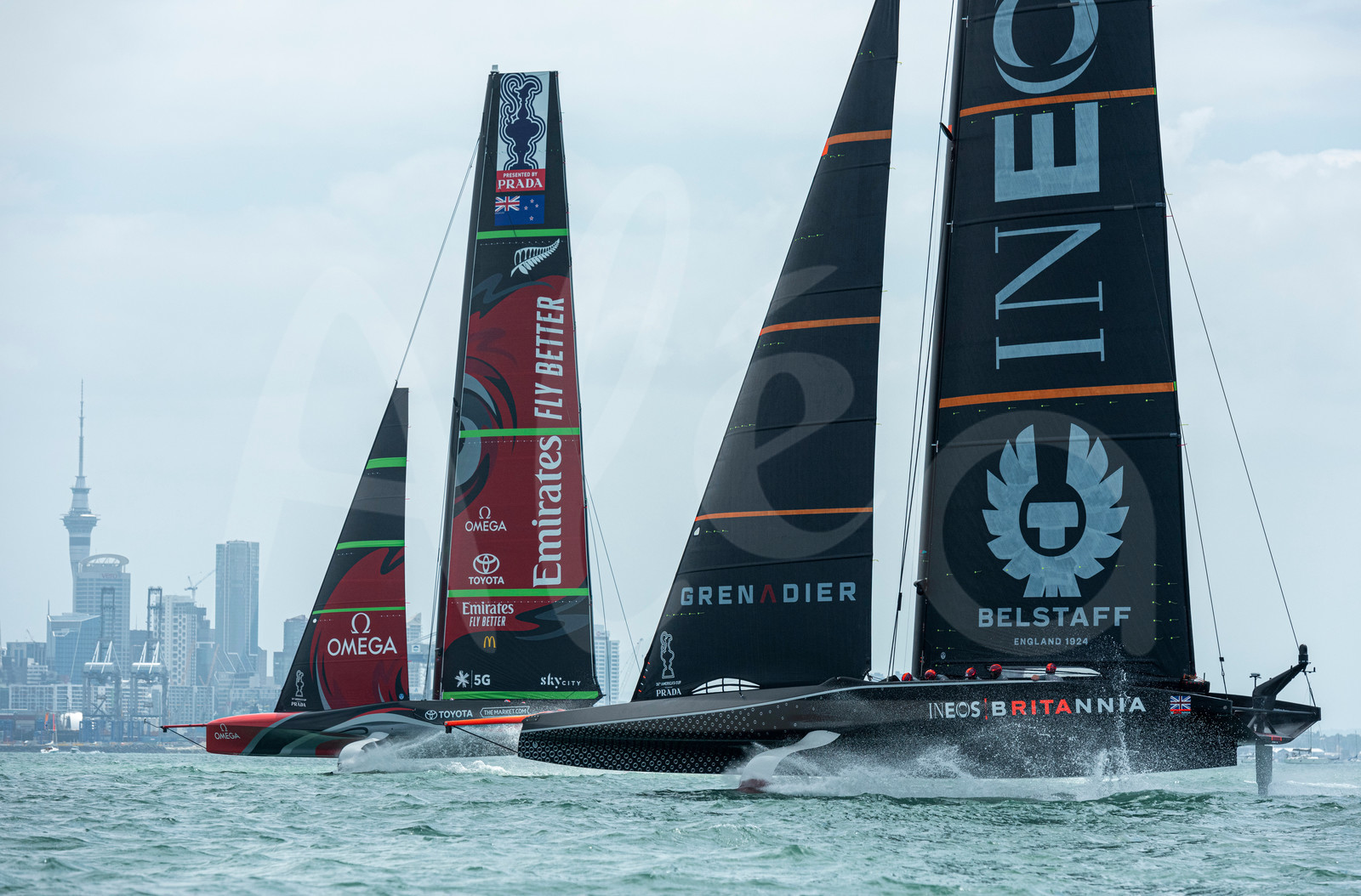 | Description | AUCKLAND, NEW-ZEALAND - DECEMBER 18: INEOS Team UK Britannia and Emirates Team New Zealand are racing during Day Two of the PRADA America's Cup World Series Race in Auckland, New-Zealand, on December 18, 2020. (photo by Chris Cameron/Alea) |