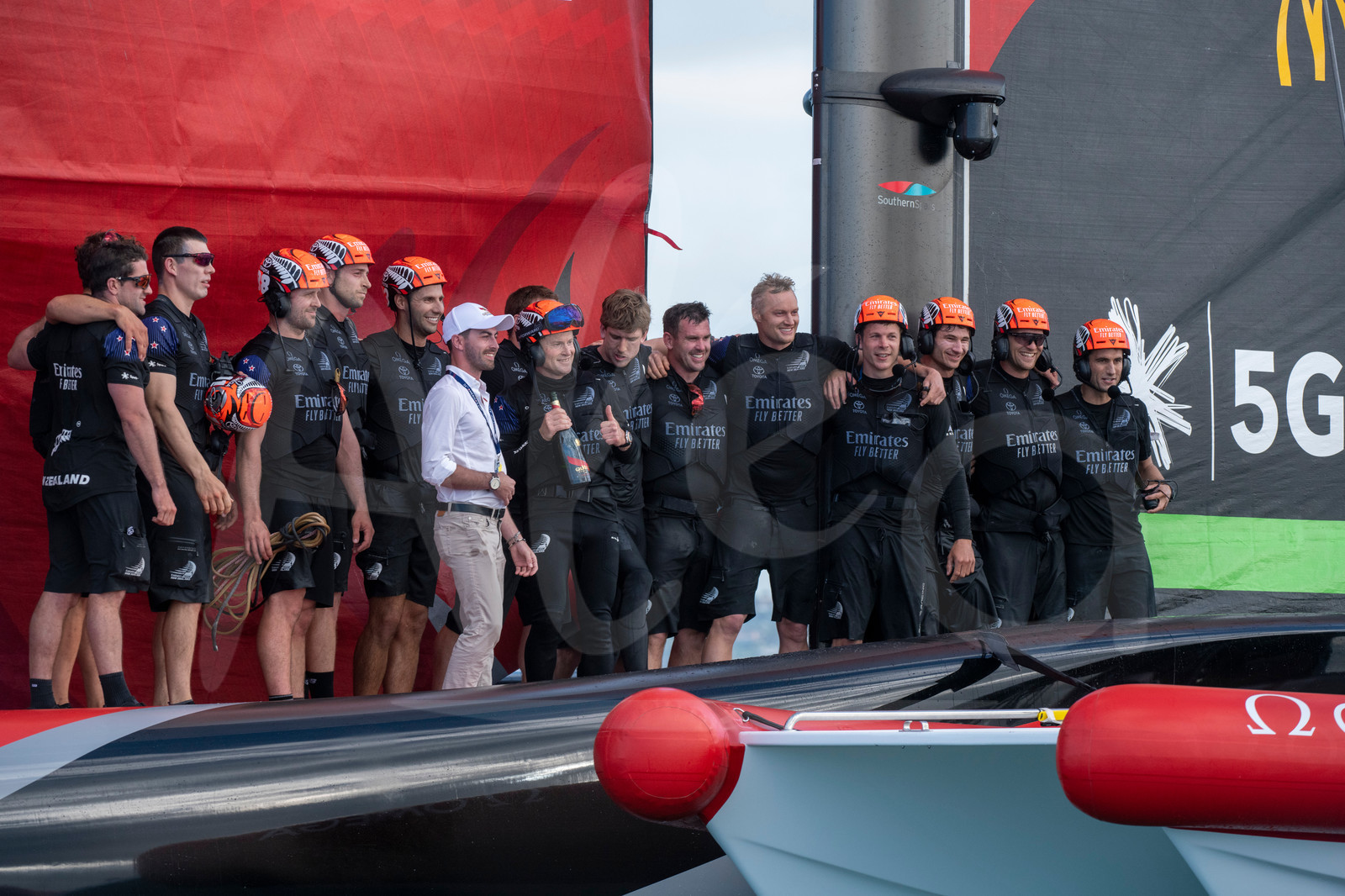 | Description | AUCKLAND, NEW-ZEALAND - DECEMBER 19: Emirates Team New Zealand on the bow of Te Rehutai celebrate winning the PRADA America's Cup World Series Race in Auckland, New-Zealand, on December 19, 2020. (photo by Chris Cameron/Alea) |