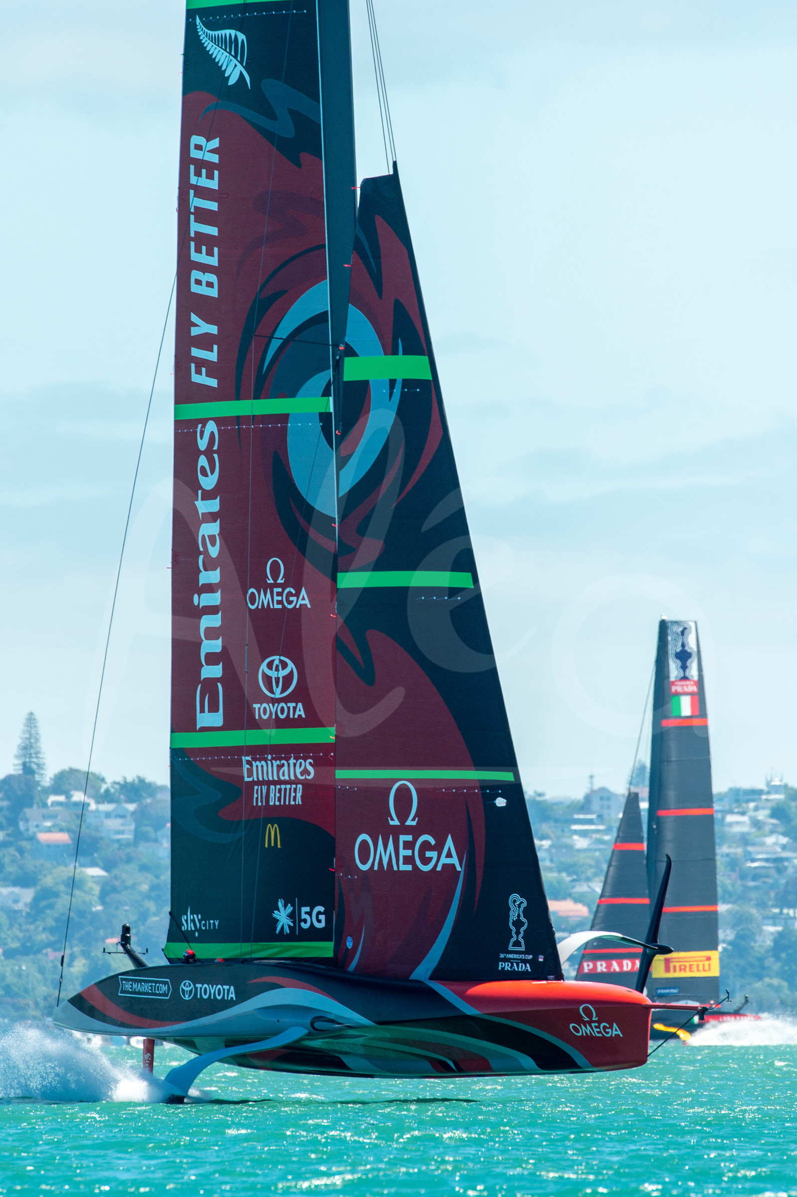| Description | AUCKLAND, NEW-ZEALAND - DECEMBER 17: Emirates Team New Zealand approaching the bottom mark well ahead of Luna Rossa Prada Pirelli Team during PRADA America's Cup World Series Auckland Race Day One in Auckland, New-Zealand, on December 17, 2020. (photo by Chris Cameron/Alea) |