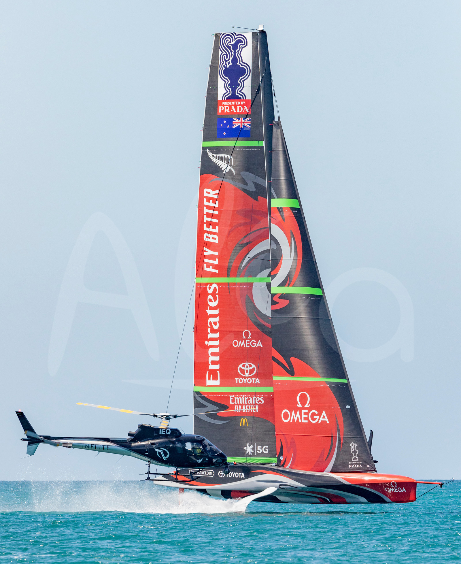 | Description | AUCKLAND, NEW-ZEALAND - DECEMBER 14: TV helicopter is following Emirates Team New Zealand while practicing for the 36th America’s Cup presented by Prada in Auckland, New-Zealand, on December 14, 2020. (photo by Stefano Gattini/Alea) |