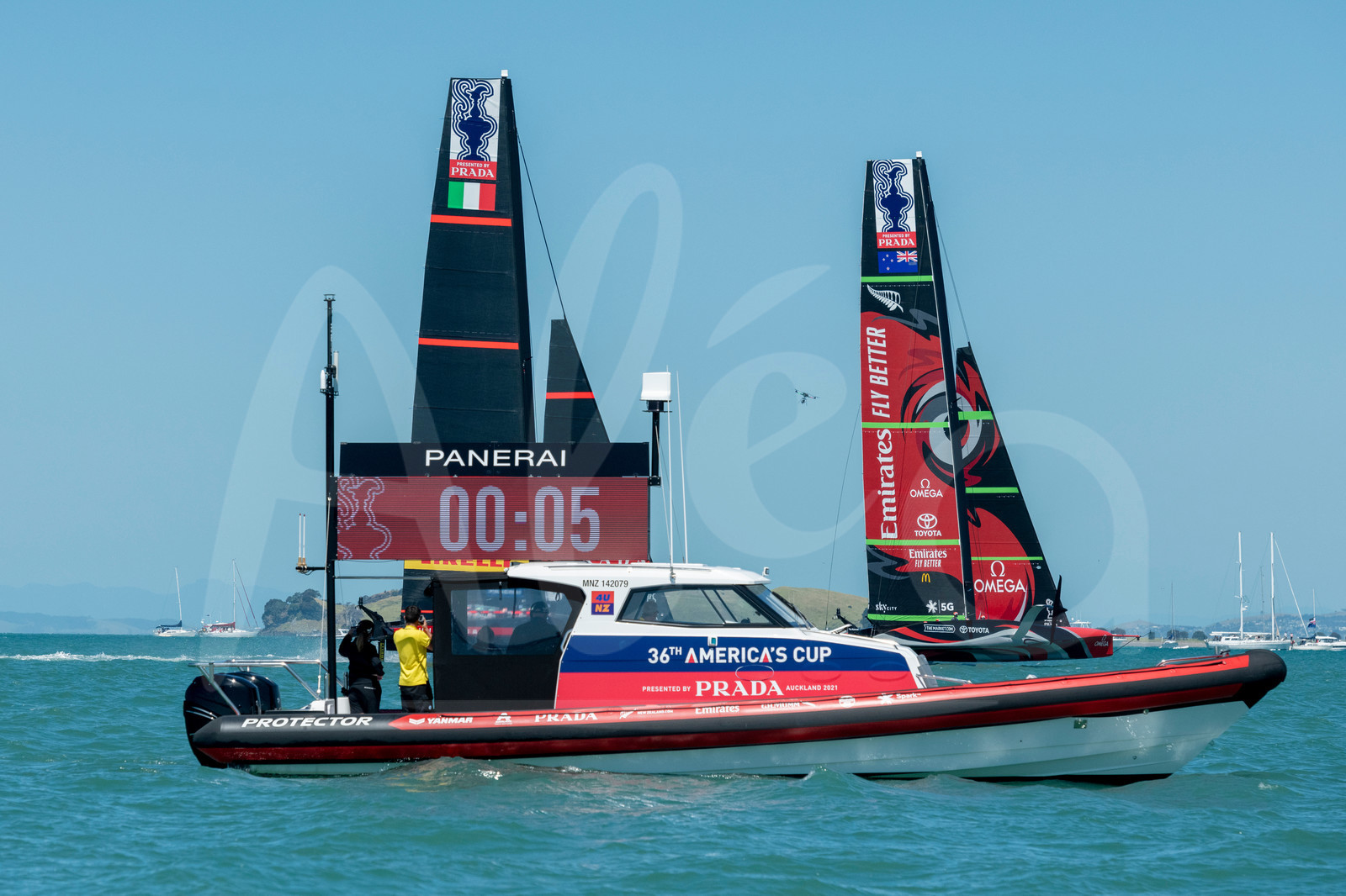 | Description | AUCKLAND, NEW-ZEALAND - DECEMBER 17: Emirates Team New Zealand and Luna Rossa Prada Pirelli Team start race one of the Regatta during PRADA America's Cup World Series Auckland Race Day One in Auckland, New-Zealand, on December 17, 2020. (photo by Chris Cameron/Alea) |