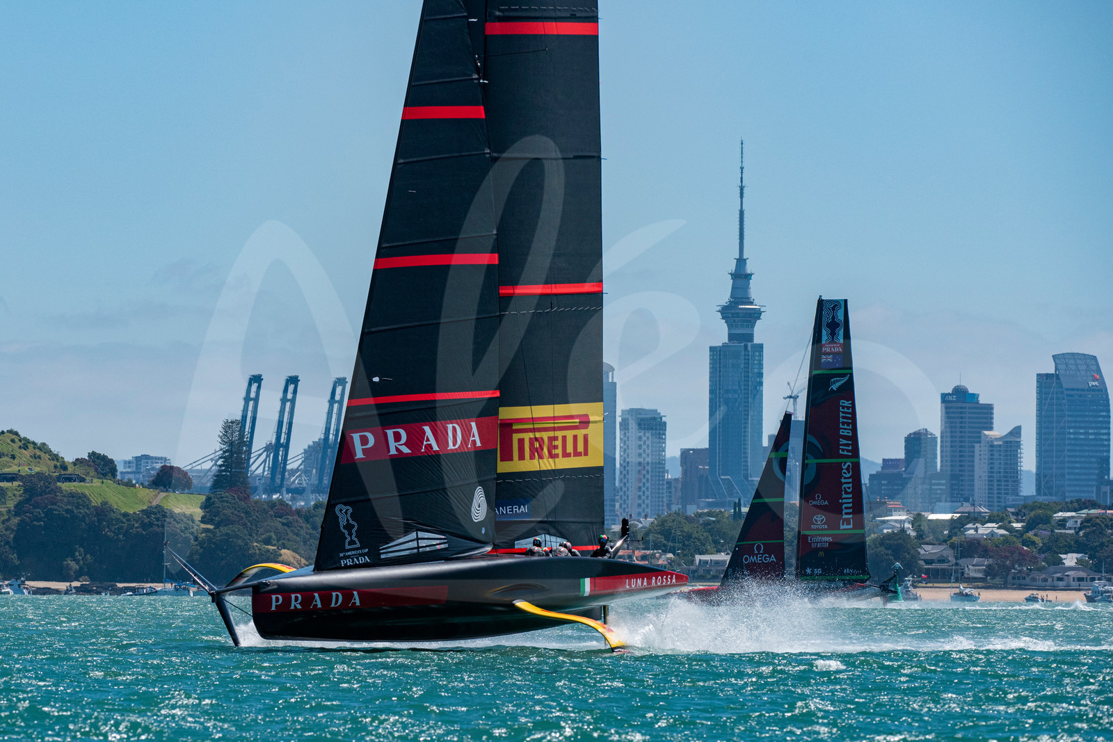 | Description | AUCKLAND, NEW-ZEALAND - DECEMBER 17: Emirates Team New Zealand sailing up the course while Luna Rossa Prada Pirelli Team are still sailing down to the bottom mark during PRADA America's Cup World Series Auckland Race Day One in Auckland, New-Zealand, on December 17, 2020. (photo by Chris Cameron/Alea) |