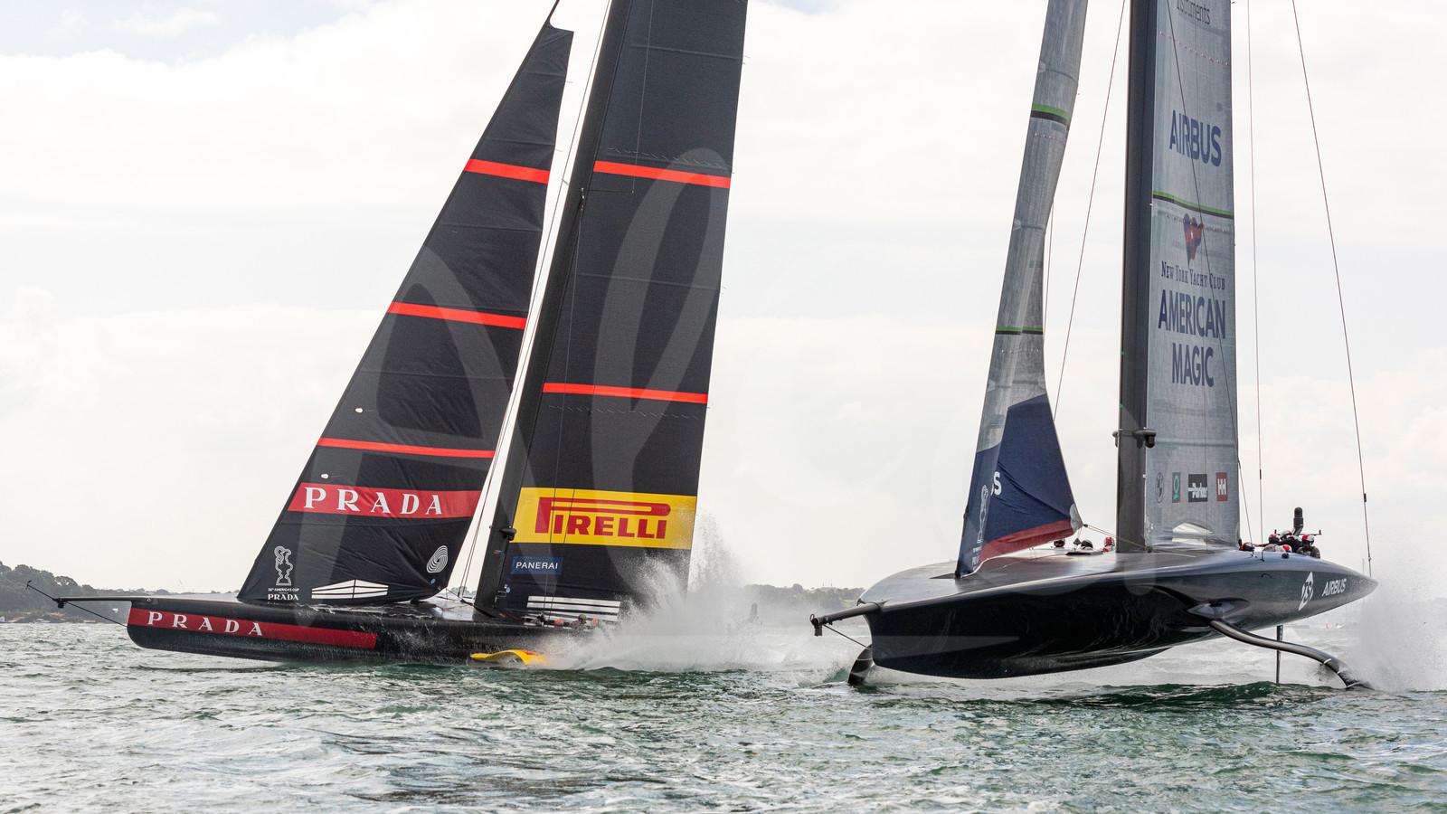 | Description | AUCKLAND, NEW-ZEALAND - DECEMBER 18: Luna Rossa Prada Pirelli in pre race manoeuvres for their second match of the day against American Magic during Day Two of the PRADA America's Cup World Series Race in Auckland, New-Zealand, on December 18, 2020. (photo by Chris Cameron/Alea) |