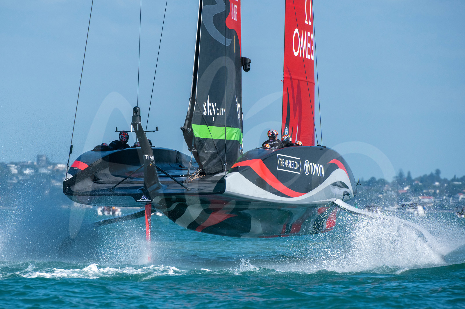 | Description | AUCKLAND, NEW-ZEALAND - DECEMBER 19: Emirates Team New Zealand chases down American Magic in their race during final day of the PRADA America's Cup World Series Race in Auckland, New-Zealand, on December 19, 2020. (photo by Chris Cameron/Alea) |