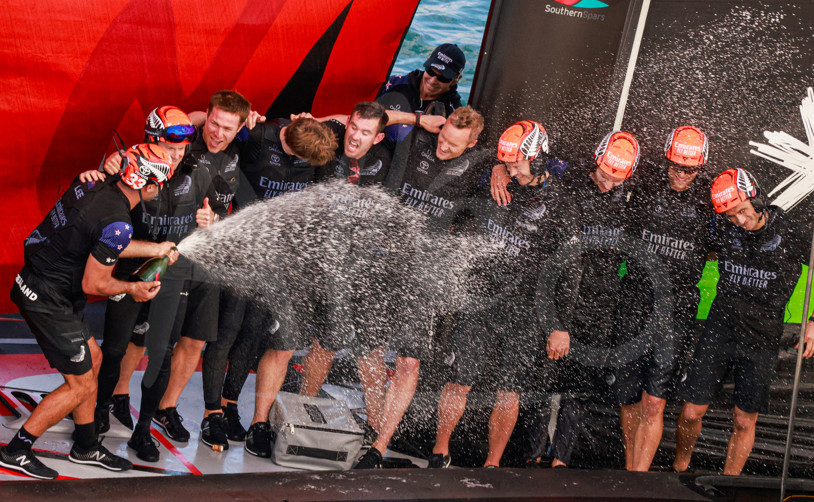 | Description | AUCKLAND, NEW-ZEALAND - DECEMBER 19: Mike Lee sprays champagne as Emirates Team New Zealand celebrate their America’s Cup World Series win during prize giving ceremony of the 36th America’s Cup presented by Prada in Auckland, New-Zealand, on December 19, 2020. (photo by Carlo Borlenghi/Alea) |