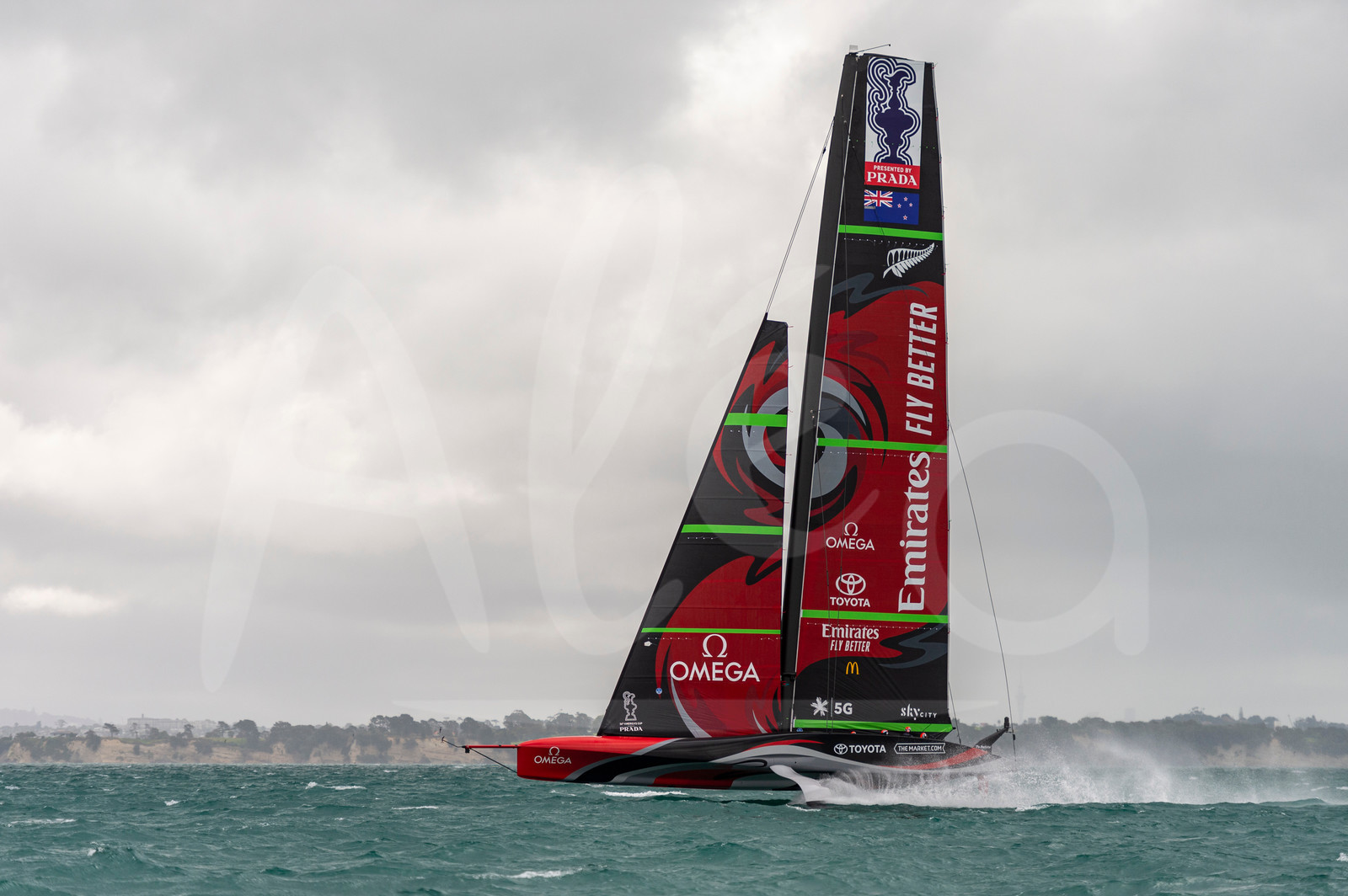 | Description | AUCKLAND, NEW-ZEALAND - DECEMBER 10: Emirates Team New Zealand before the start practice session against Luna Rossa Prada Pirelli Team. America's Cup Challengers and the Defender participate in organised practice on the course E race area for the Prada Cup and America's Cup, off Auckland, New-Zealand, on December 10, 2020. (photo by Chris Cameron/Alea) |