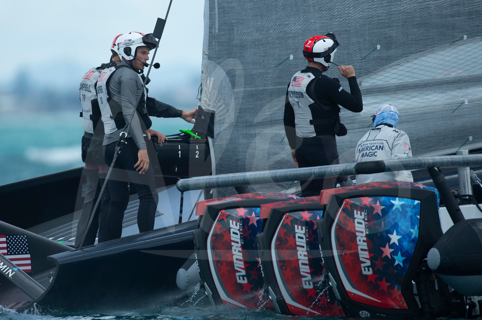 | Description | AUCKLAND, NEW-ZEALAND - DECEMBER 8: American Magic helmsman Dean Barker in the back of Patriot. America's Cup Challengers and the Defender participate in organised practice on the course E race area for the Prada Cup and America's Cup, off Auckland, New-Zealand, on December 8, 2020. (photo by Chris Cameron/Alea) |