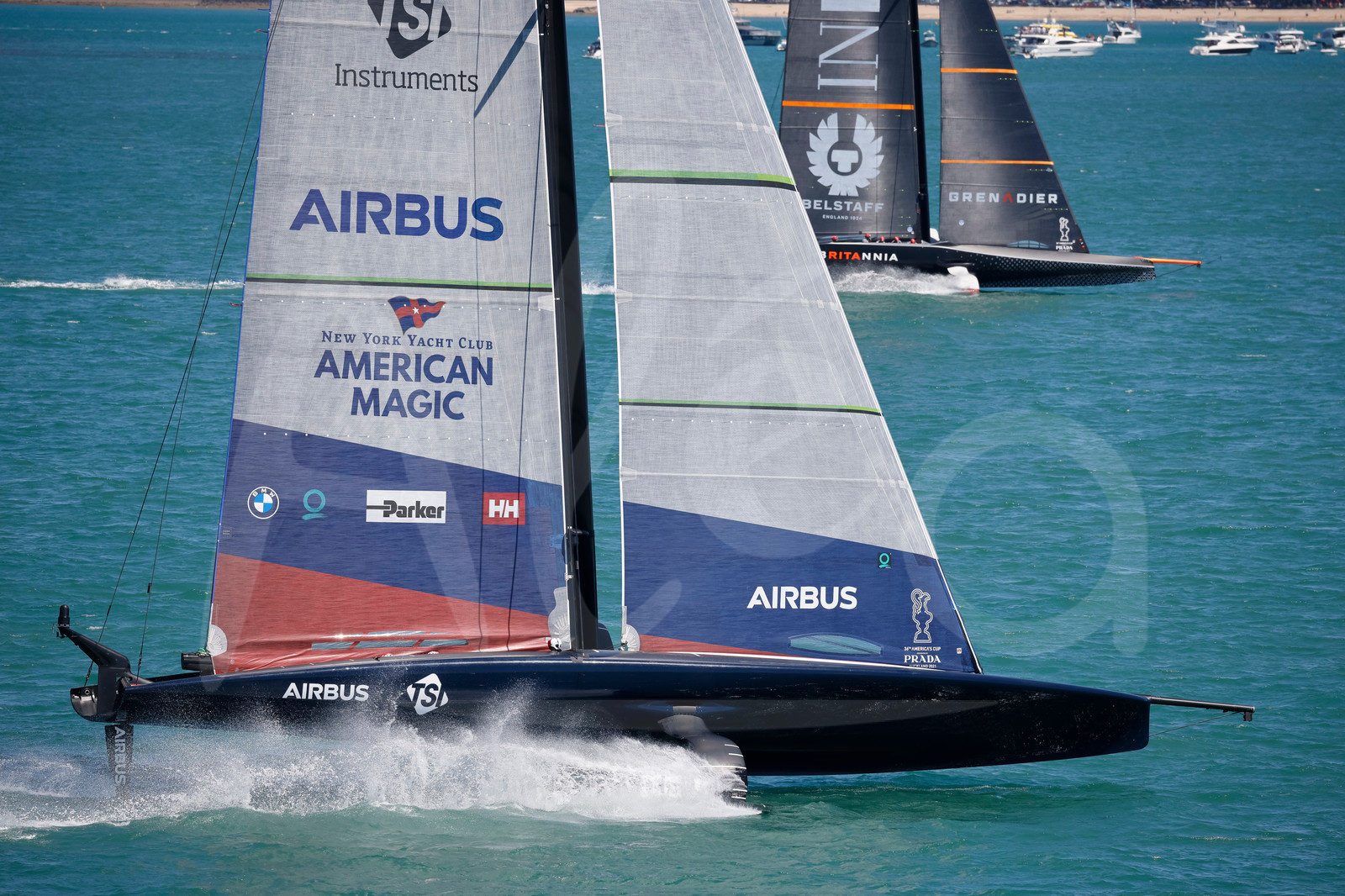 | Description | AUCKLAND, NEW-ZEALAND - JANUARY 15: Ineos Team UK and New York Yacht Club American Magic compete during America's Cup presented by Prada RR1, off Auckland, New-Zealand, on January 15, 2021. (photo by Carlo Borlenghi/Alea) |