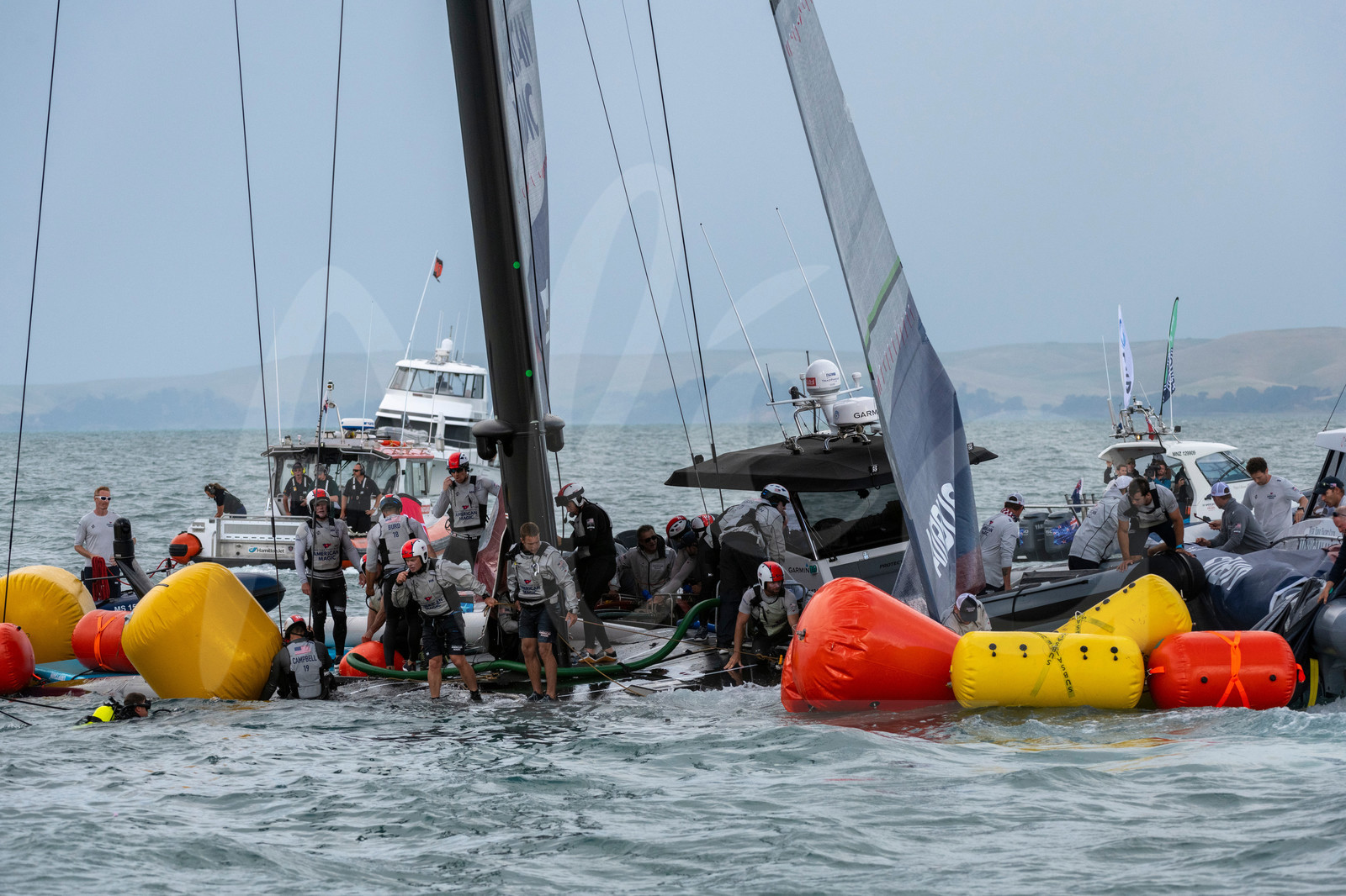 | Description | AUCKLAND, NEW-ZEALAND - JANUARY 17: Recovery of Patriot is illustrated after American Magic capsize in their Round Robin 2 match against Luna Rossa Prada Pirelli Team during America's Cup presented by Prada, off Auckland, New-Zealand, on January 17, 2021. (photo by Chris Cameron/Alea) |