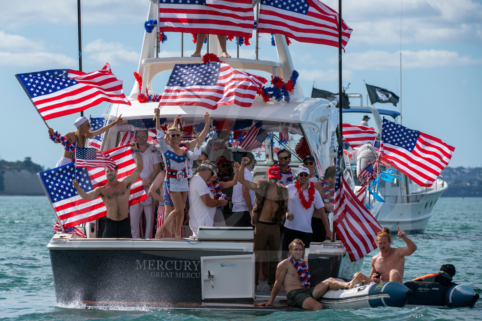 | Description | AUCKLAND, NEW-ZEALAND - JANUARY 16: A spectator boat showing support for NYYC American Magic is illustrated during America's Cup presented by Prada, off Auckland, New-Zealand, on January 16, 2021. (photo by Chris Cameron/Alea) |