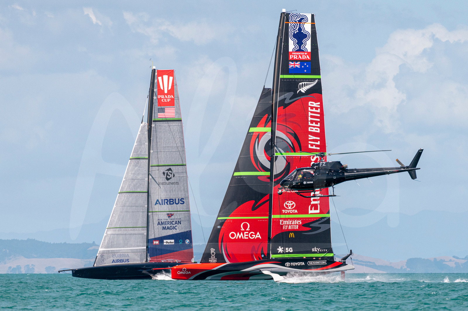 | Description | AUCKLAND, NEW-ZEALAND - JANUARY 12: Emirates Team New Zealand and American Magic are pictured during an America's Cup practice session on the Waitemata Harbour off Auckland, New-Zealand, on January 12, 2021. (photo by Chris Cameron/Alea) |