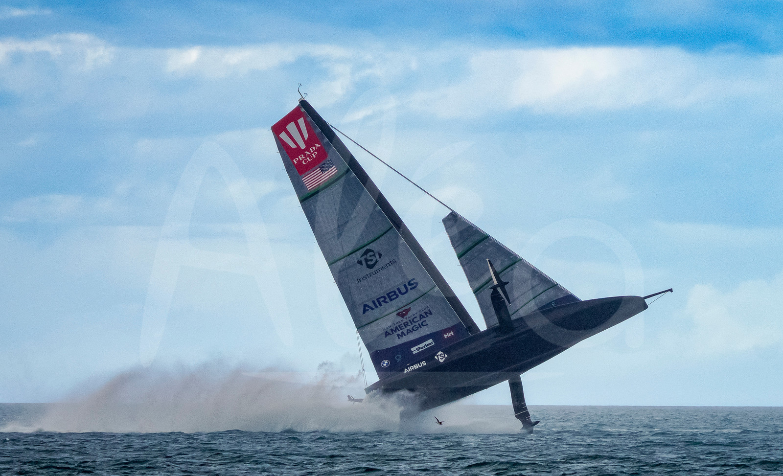 | Description | AUCKLAND, NEW-ZEALAND - JANUARY 17: New York Yacht Club American Magic capsizes during America's Cup presented by Prada RR2, off Auckland, New-Zealand, on January 17, 2021. (photo by Luca Butto/Alea) . |