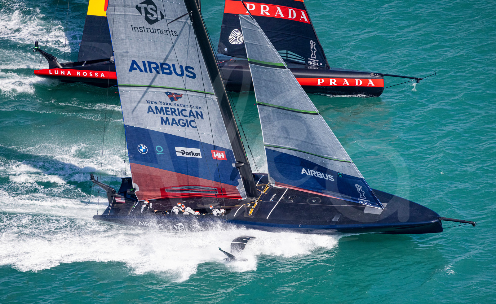 | Description | AUCKLAND, NEW-ZEALAND - JANUARY 11: New York Yacht Club American Magic, Luna Rossa Prada Pirelli Team are pictured during America's Cup presented by Prada training day 1, off Auckland, New-Zealand, on January 11, 2021. (photo by Carlo Borlenghi/Alea) . |