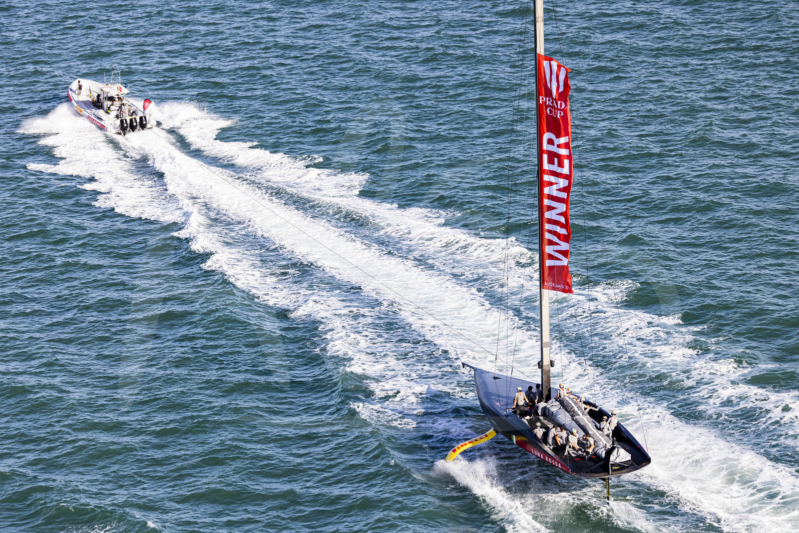 | Description | AUCKLAND, NEW-ZEALAND - FEBRUARY 21: Luna Rossa Prada Pirelli Team is towed by chase boat, celebrating winning the Prada Cup 2021 final, off Auckland, New-Zealand, on February 21, 2021. (photo by Carlo Borlenghi/Alea) |