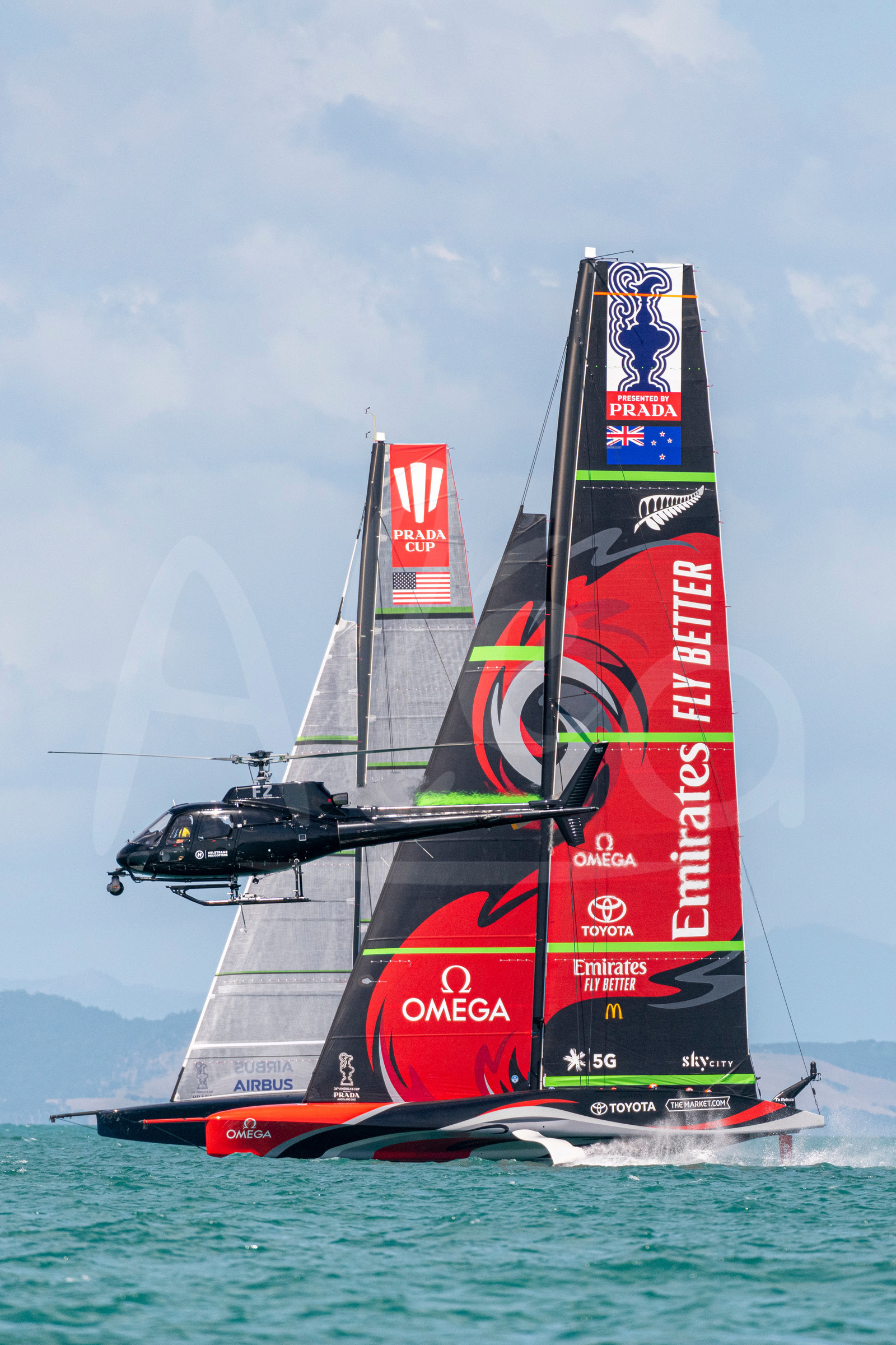 | Description | AUCKLAND, NEW-ZEALAND - JANUARY 12: Emirates Team New Zealand and American Magic are pictured during an America's Cup practice session on the Waitemata Harbour off Auckland, New-Zealand, on January 12, 2021. (photo by Chris Cameron/Alea) |