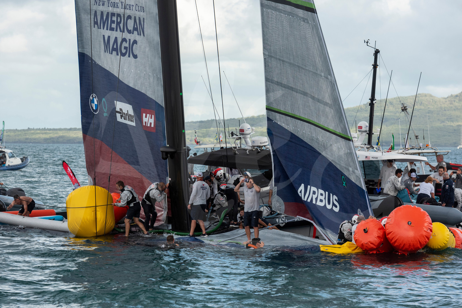 | Description | AUCKLAND, NEW-ZEALAND - JANUARY 17: Recovery of Patriot is illustrated after American Magic capsize in their Round Robin 2 match against Luna Rossa Prada Pirelli Team during America's Cup presented by Prada, off Auckland, New-Zealand, on January 17, 2021. (photo by Chris Cameron/Alea) |