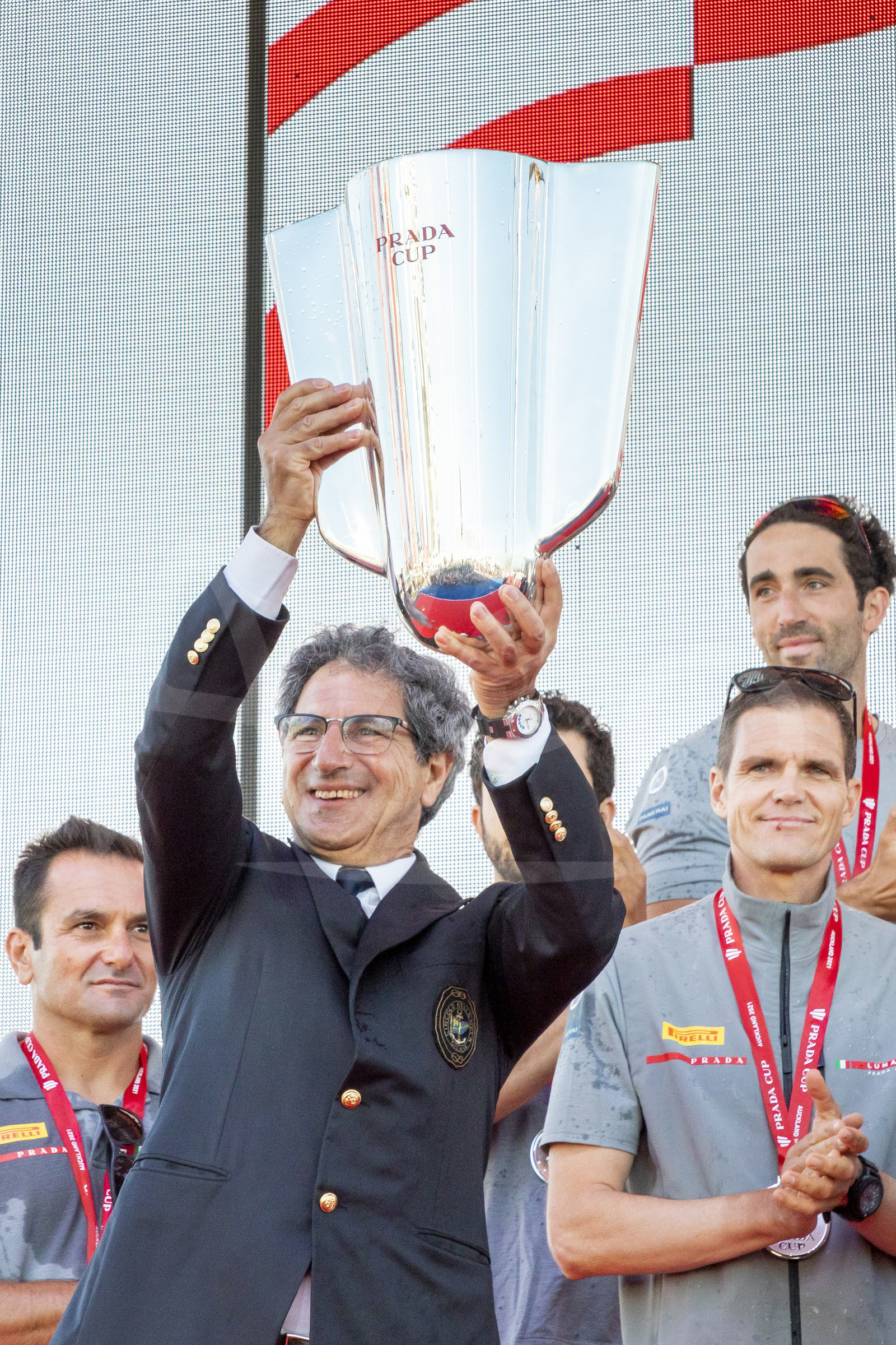 | Description | AUCKLAND, NEW-ZEALAND - FEBRUARY 23: Agostino Randazzo (Commodore of the Circolo della Vela Sicilia) receives the trophy after winning the America's Cup presented by Prada, in Auckland, New-Zealand, on February 23, 2021. (photo by Stefano Gattini/Alea) |