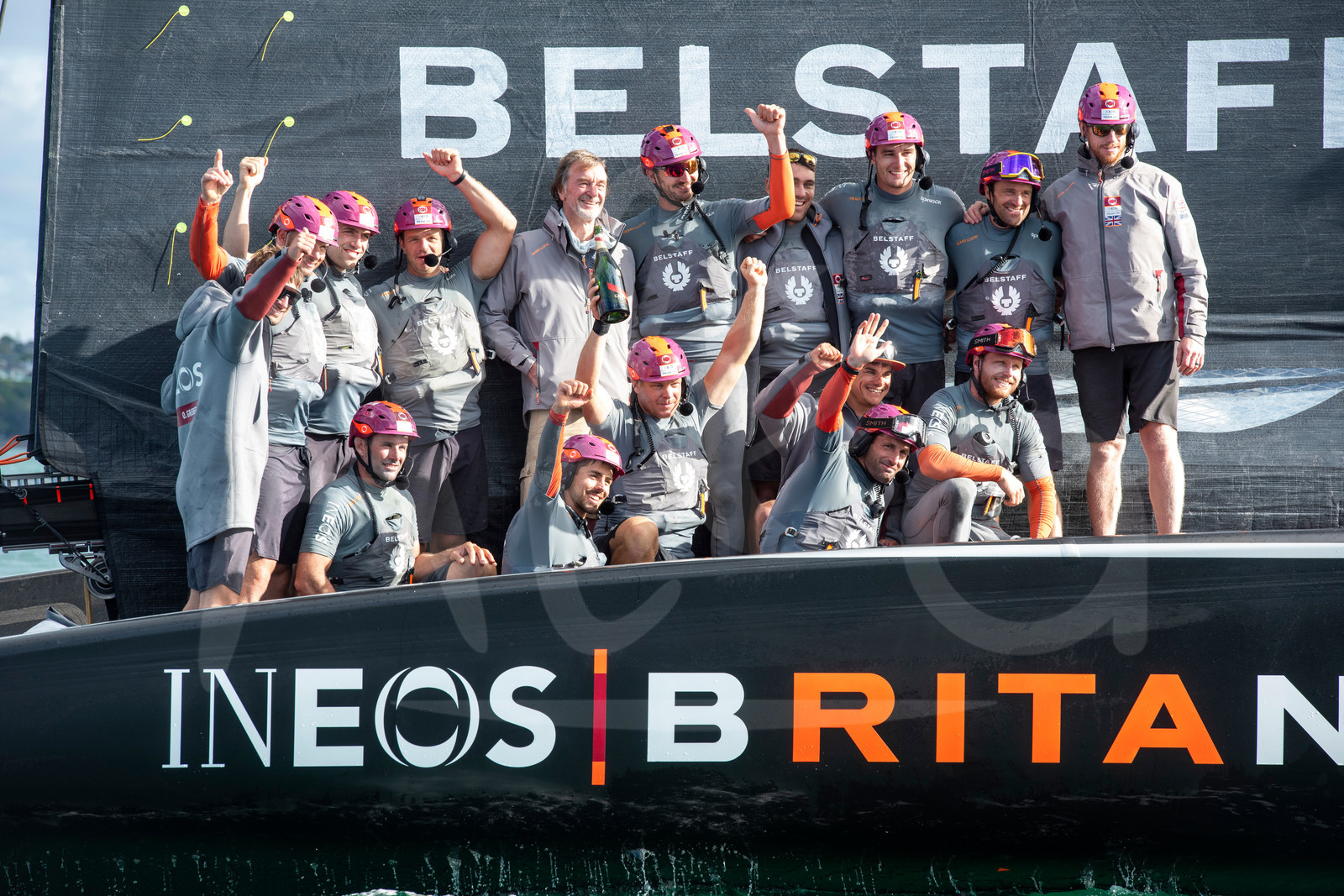 | Description | AUCKLAND, NEW-ZEALAND - JANUARY 23: INEOS Team UK celebrate on board Britania with Sir Jim Ratcliffe after winning the Round Robin section of the Prada Cup in Auckland, New-Zealand, on January 23, 2021. (photo by Chris Cameron/Alea) |
