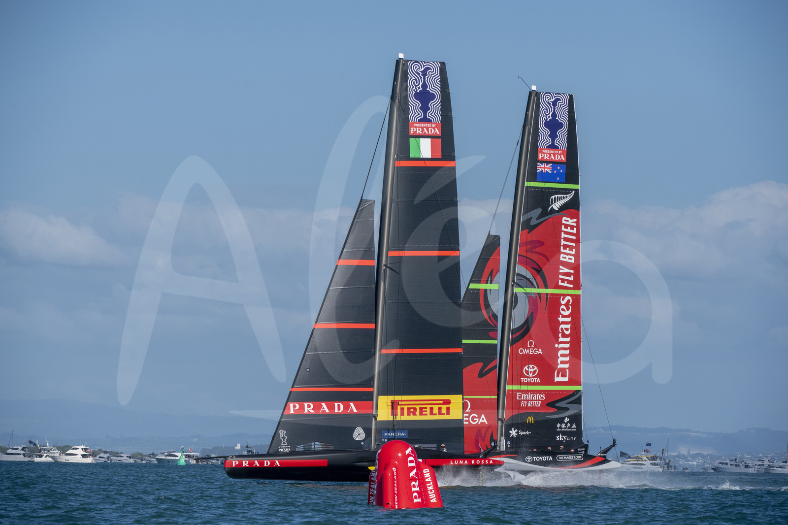| Description | AUCKLAND, NEW-ZEALAND - MARCH 17: Emirates Team New Zealand and Luna Rossa Prada Pirelli Team start race ten of the America's Cup presented by Prada, in Auckland, New-Zealand, on March 17, 2021. (photo by Chris Cameron/Alea) |