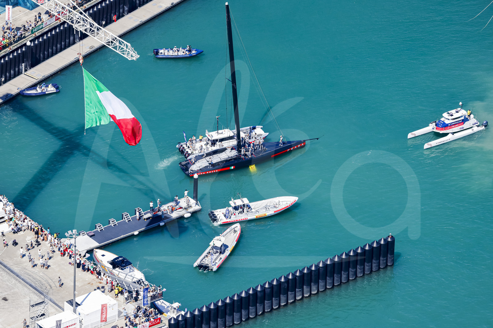 | Description | AUCKLAND, NEW-ZEALAND - MARCH 13: Luna Rossa Prada Pirelli Team base is illustrated during America's Cup, in Auckland, New Zealand, on March 13, 2021. (photo by Carlo Borlenghi/Alea) |