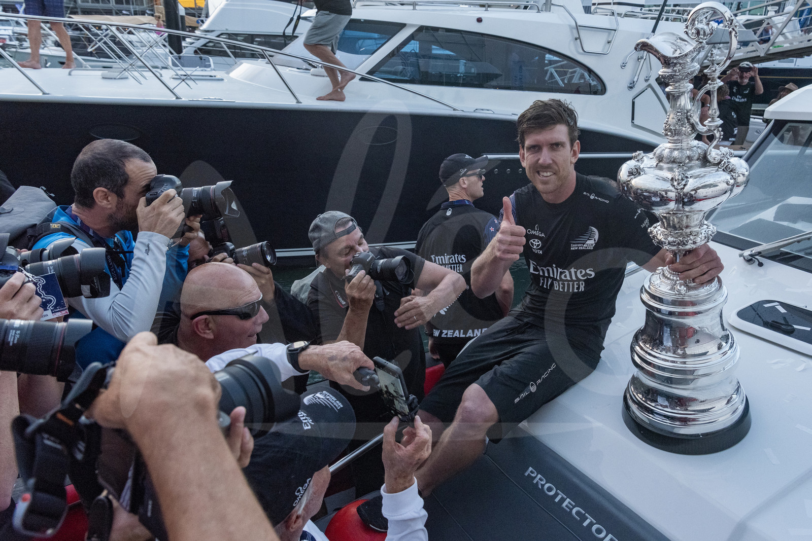 | Description | AUCKLAND, NEW-ZEALAND - MARCH 17: Emirates Team New Zealand helmsman Peter Burling is pictured with the cup after winning the America's Cup against Luna Rossa Prada Pirelli Team 7 - 3, in Auckland, New-Zealand, on March 17, 2021. (photo by Chris Cameron/Alea) |