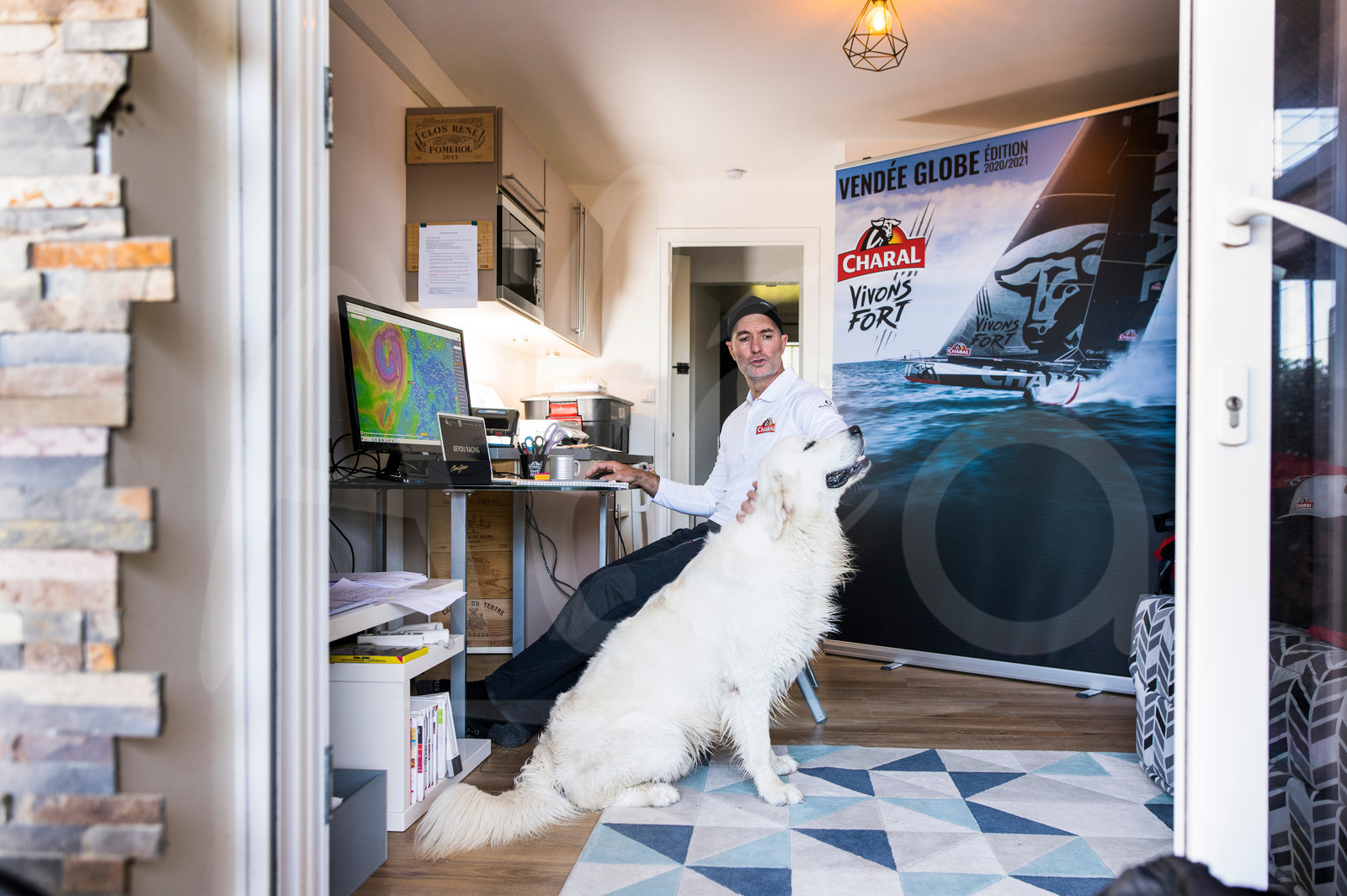 | Description | #EN# LES SABLES D’OLONNE, FRANCE - NOVEMBER 4: The Charal skipper Jeremie Beyou is portraited working and walking his dog in and around his house during his compulsory confinement during the Vendee Globe prestart in les Sables d’Olonne, France, on November 4, 2020. (Photo by Vincent Curutchet/Alea) #FR# LES SABLES D’OLONNE, FRANCE - 4 NOVEMBRE: Le skipper de Charal, Jeremie Beyou, est photographié en train de travailler et de promener son chien dans et autour de son lieu de confinement obligatoire, lors de la semaine prestart du Vendee Globe aux Sables d’Olonne, le 4 Novembre 2020. (Photo by Vincent Curutchet/Alea) |