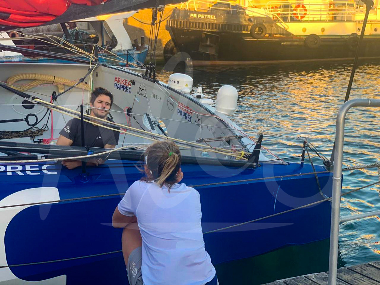 | Description | #EN# CAPE TOWN, SOUTH AFRICA - DECEMBER 5: Skipper Sebastien Simon, Arkea Paprec, is pictured talking with Sam Davies, Initiatives Coeur, after arriving in the harbour for retirement, having suffered major damages during the sailing race Vendee Globe, in Cape Town, South Africa, on december 5, 2020. (Photo by Nikki Behrens/4DGS photo/Alea) #FR# LE CAP, AFRIQUE DU SUD - 5 DECEMBRE: Skipper Sebastien Simon, Arkea Paprec, est photographié en train de discuter avec Sam Davies, Initiatives Coeur, à son arrivée au ponton avant d’abandonner après avoir subi des avaries majeures lors du tour du monde à la voile du Vendee Globe, au Cap, Afrique du Sud, le 5 décembre 2020. (Photo by Nikki Behrens/4DGS photo/Alea) |