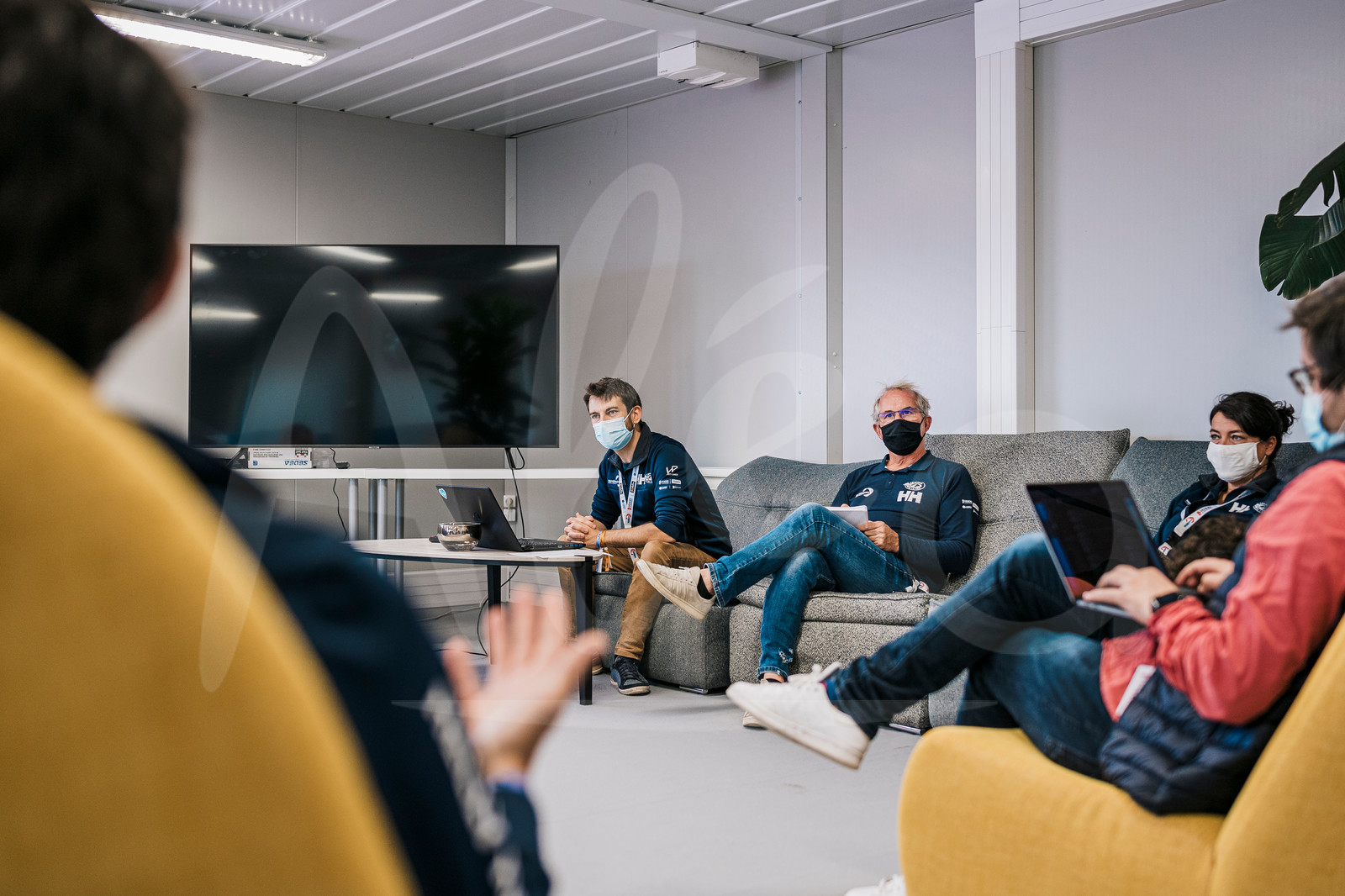 | Description | #EN# LES SABLES D’OLONNE, FRANCE - OCTOBER 28: A day with Jacques Caraes (Race Director). Organisation daily meeting with Yannick Bersot (Communication Director), Stephanie Ruchaud and other managers, during the Vendee Globe prestart in les Sables d’Olonne, France, on October 28, 2020. (Photo by Jean-Louis Carli/Alea) #FR# LES SABLES D’OLONNE, FRANCE - 28 OCTOBRE: Un jour avec Jacques Caraes (Race Director). Jacques participe à une réunion quotidienne avec Yannick Bersot (Directeur Communication), Stephanie Ruchaud et d’autres responsables, lors de la semaine prestart du Vendee Globe aux Sables d’Olonne, le 28 Octobre 2020. (Photo by Jean-Louis Carli/Alea) |