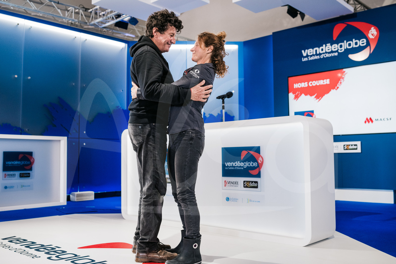 | Description | #EN# LES SABLES D’OLONNE, FRANCE - FEBRUARY 24: Skipper Isabelle Joschke, MACSF, is congratulated by Jean Le Cam at her press conference during arrival after retiring from the Vendee Globe sailing race, on February 24, 2021. (Photo by Jean-Louis Carli/Alea) #FR# LES SABLES D’OLONNE, FRANCE - 24 FEVRIER: La skipper Isabelle Joschke, MACSF, est félicité par Jean Le Cam en conférence de presse pendant son arrivée après avoir du abandonner la course du Vendee Globe, le 24 Février 2021. (Photo Jean-Louis Carli/Alea) |