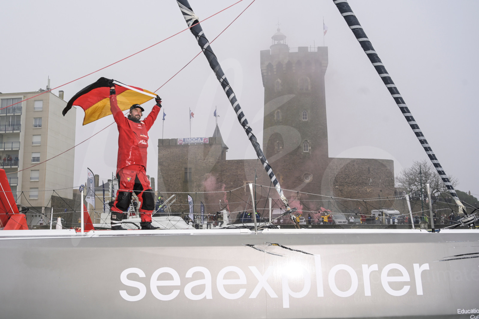 | Description | #EN# LES SABLES D’OLONNE, FRANCE - JANUARY 28: Seaexplorer - YC de Monaco, skipper Boris Herrmann (GER) is pictured with the German flag during finish of the Vendee Globe sailing race, on January 28, 2021. (Photo by Vincent CurutchetAlea) #FR# LES SABLES D’OLONNE, FRANCE - 28 JANVIER: Seaexplorer - YC de Monaco, skipper Boris Herrmann (GER), est photographié avec le drapeau allemand lors de son arrivée dans la course du Vendee Globe, le 28 Janvier 2021. (Photo Vincent CurutchetAlea) |