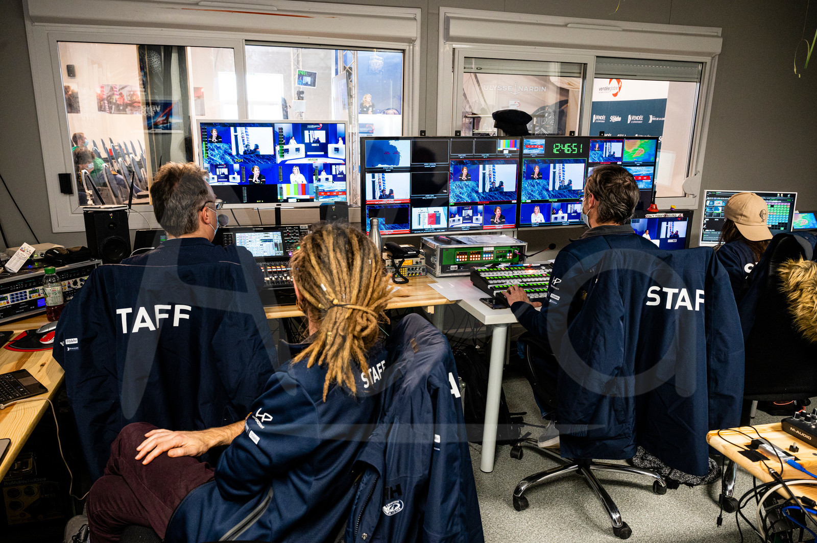 | Description | #EN# LES SABLES D’OLONNE, FRANCE - JANUARY 27: The Vendee Live TV broadcast production team is at work during the arrivals of the Vendee Globe in les Sables d’Olonne, France, on January 27, 2021. (Photo by Bernard Le Bars/Alea) #FR# LES SABLES D’OLONNE, FRANCE - 27 JANVIER: La régie TV de l’émission Vendee Live est au travail pendant les arrivées du Vendee Globe, aux Sables d’Olonne, le 27 Janvier 2021. (Photo by Bernard Le Bars/Alea) |