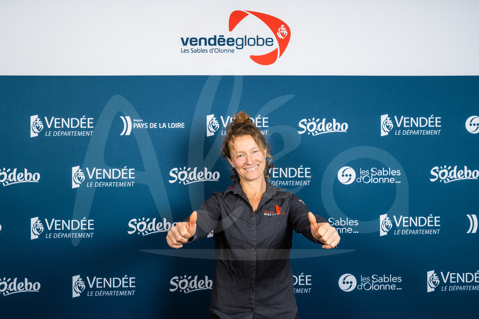 | Description | #EN# LES SABLES D’OLONNE, FRANCE - FEBRUARY 24: Skipper Isabelle Joschke, MACSF, is portraited before the official backdrop during arrival after retiring from the Vendee Globe sailing race, on February 24, 2021. (Photo by Jean-Louis Carli/Alea) #FR# LES SABLES D’OLONNE, FRANCE - 24 FEVRIER: La skipper Isabelle Joschke, MACSF, est photographiée devant le backdrop officiel pendant son arrivée après avoir du abandonner la course du Vendee Globe, le 24 Février 2021. (Photo Jean-Louis Carli/Alea) |
