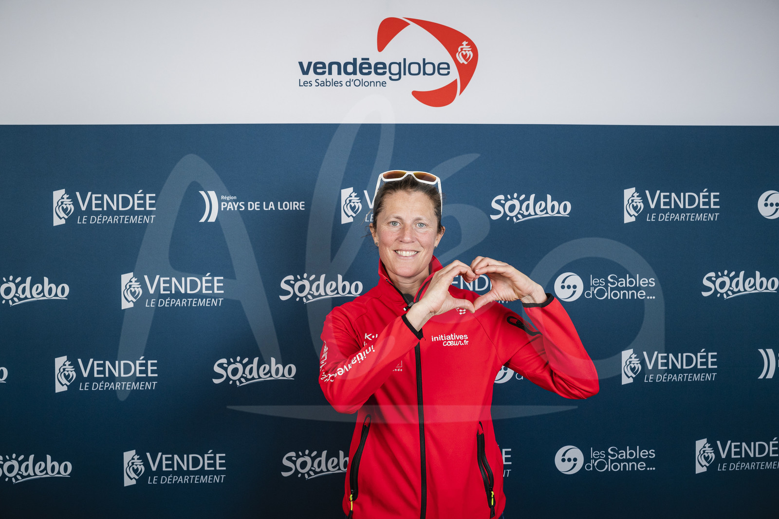 | Description | #EN# LES SABLES D’OLONNE, FRANCE - FEBRUARY 26: Skipper Sam Davies (GBR), Initiatives Coeur, is portraited before the official backdrop during arrival after retiring from the Vendee Globe sailing race, on February 26, 2021. (Photo by Jean-Louis Carli/Alea) #FR# LES SABLES D’OLONNE, FRANCE - 26 FEVRIER: La skipper Sam Davies, Initiatives Coeur, est photographiée devant le backdrop officiel pendant son arrivée après avoir du abandonner la course du Vendee Globe, le 26 Février 2021. (Photo Jean-Louis Carli/Alea) |