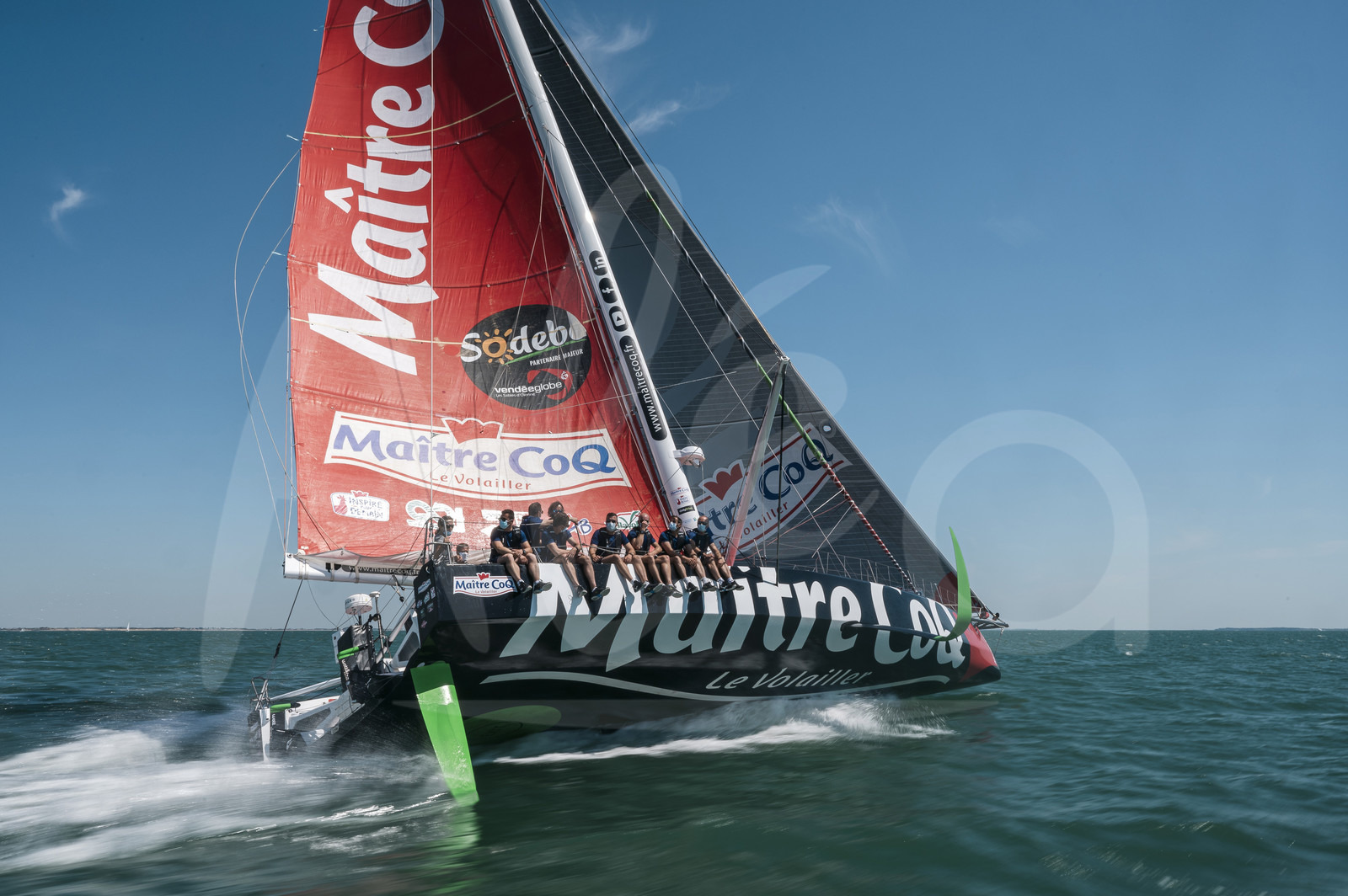 | Description | LA ROCHELLE, FRANCE - JUNE 14: Members of the PAF, Patrouille Aerienne de France, are sailing on Imoca Maitre Coq with winner of the Vendee Globe Yannick Bestaven, on June 14, 2021 in La Rochelle, France. (Photo by Olivier Blanchet / Alea) |