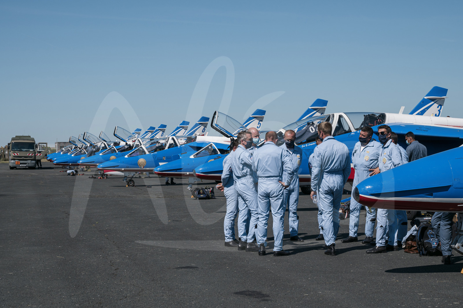 | Description | LA ROCHELLE, FRANCE - JUNE 13: The Alphajets pilots of the PAF, Patrouille Aerienne de France, are debriefing on the tarmac of the airport, on June 13, 2021 in La Rochelle, France. (Photo by Olivier Blanchet / Alea) |