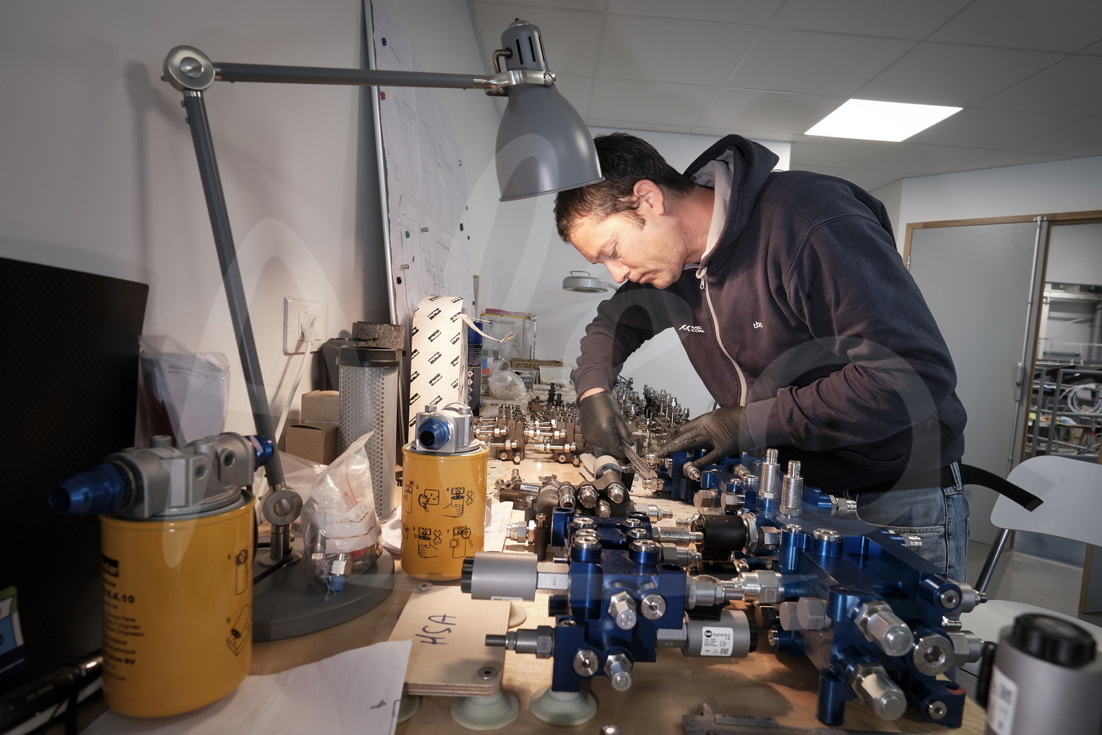 | Description | Mer Concept - construction du trimaran M101 à Concarneau - Erwan LEMEILLEUR (Responsable Hydraulique) dans son bureau le 28 avril 2021 - Photo Benoit Stichelbaut / Alea |