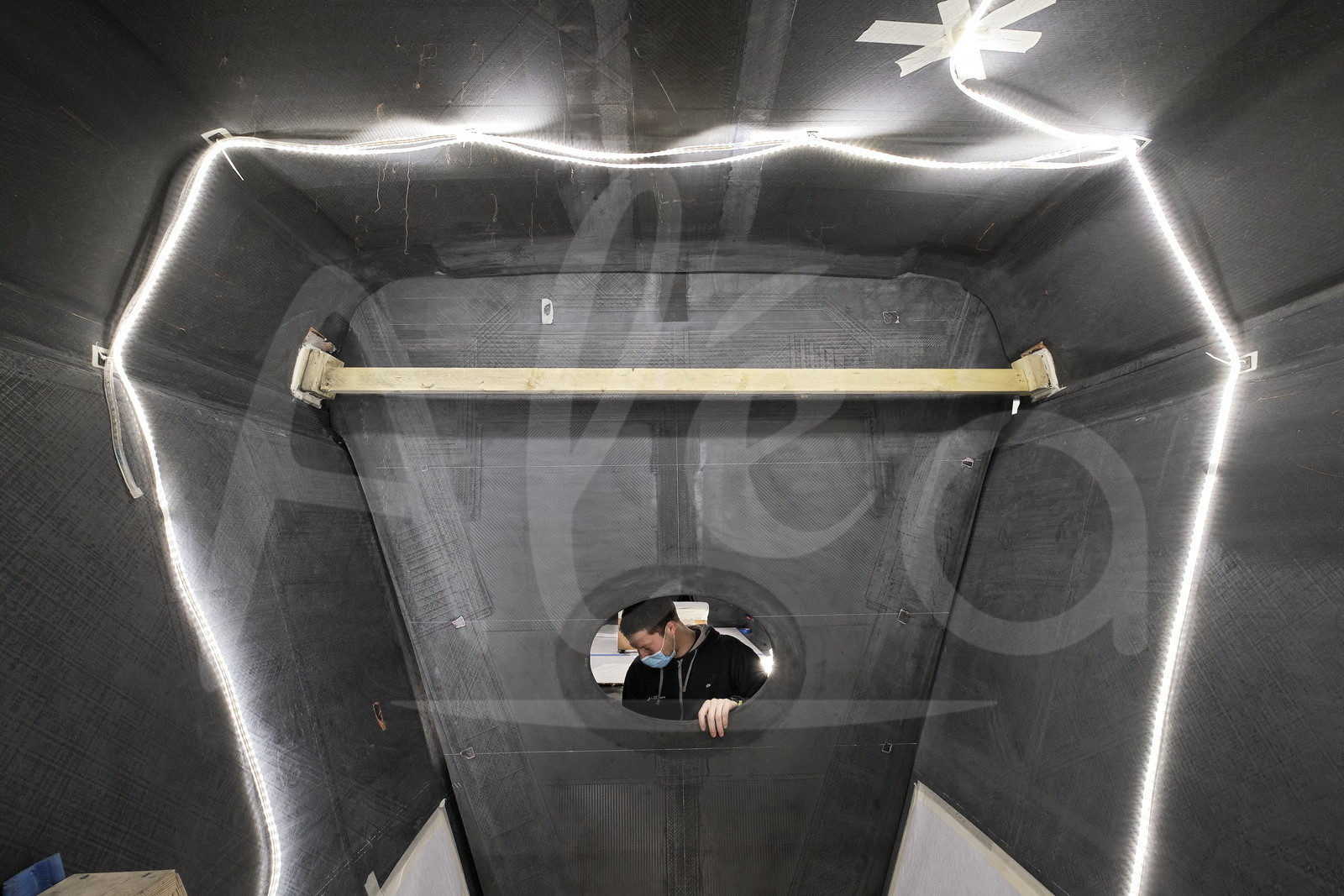 | Description | Construction du trimaran Ultim M101 (François Gabart) dans les locaux de Mer Concept à Concarneau le 08/02/2021 - mise en place du bras avant - Ulysse DAVID (Ingenieurs Etudes) - Photo Benoit Stichelbaut / Alea |