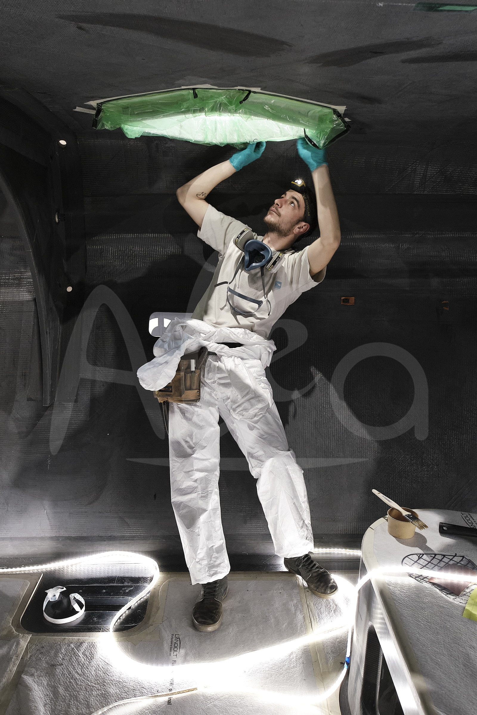 | Description | Construction du trimaran Ultim M101 (François Gabart) dans les locaux de Mer Concept à Concarneau le 04/02/2021 - Kelig HENRY (Technicien Composites) - Photo Benoit Stichelbaut / Alea |