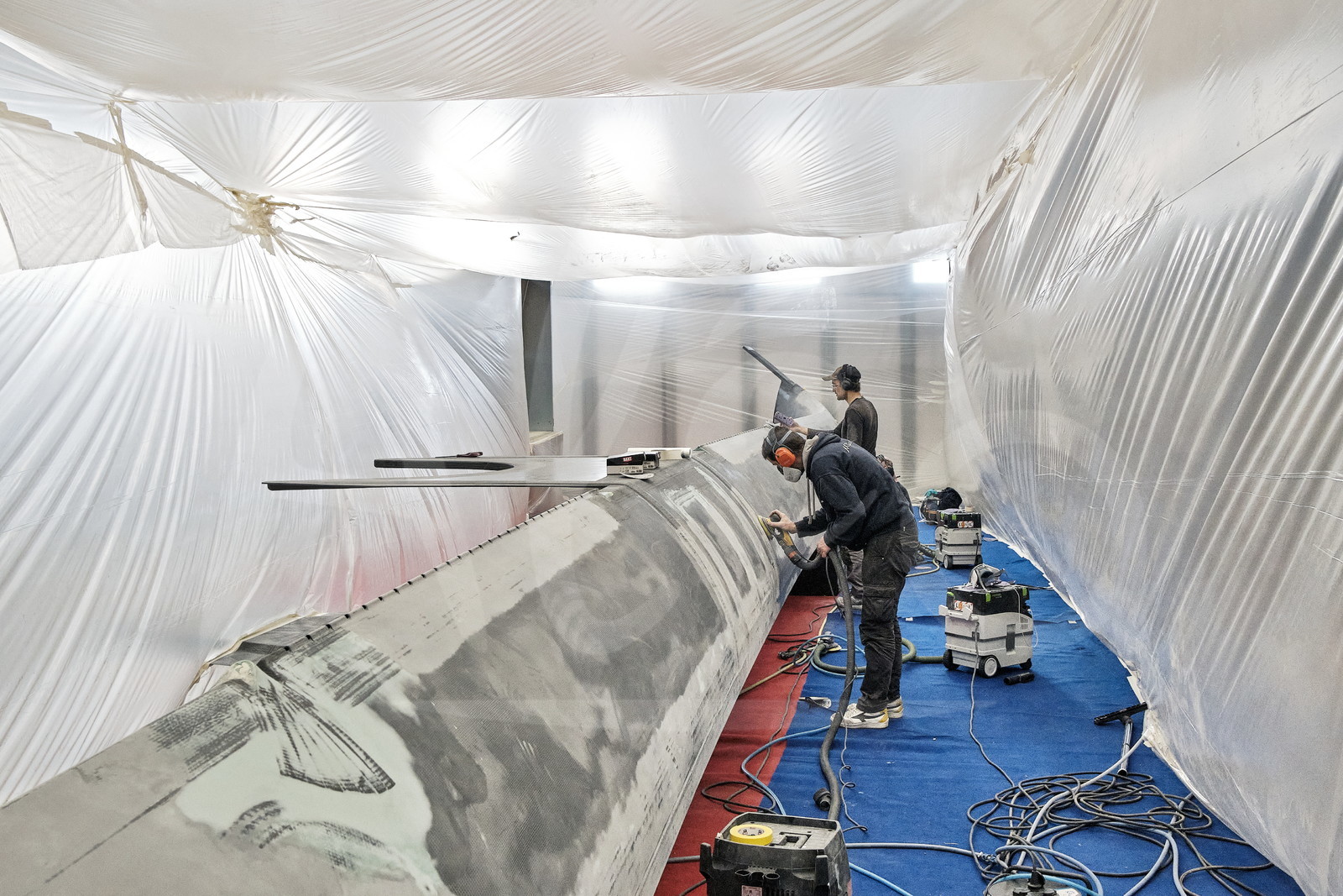 | Description | Construction du trimaran Ultim M101 (François Gabart) dans les locaux de Mer Concept à Concarneau le 04/02/2021 - Photo Benoit Stichelbaut / Alea |