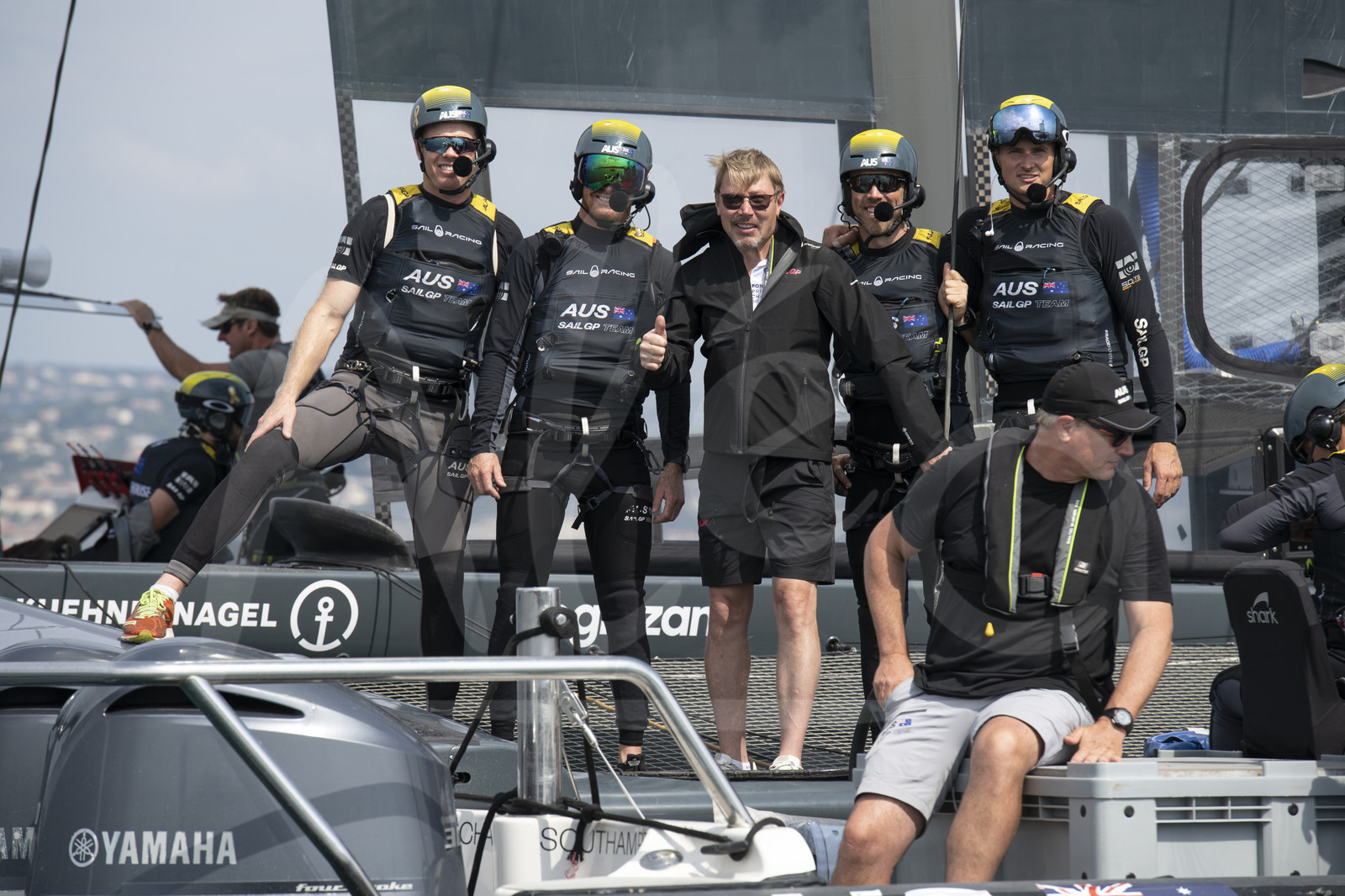 | Description | ST TROPEZ, FRANCE - SEPTEMBER 10: Australia SailGP Team is posing with VIP guest Mika Häkkinen (Formula 1 world Champion) during practice day of SailGP on Saint-Tropez Harbour on September 10, 2021 in St Tropez, France. (Photo by Olivier Blanchet /Alea) |
