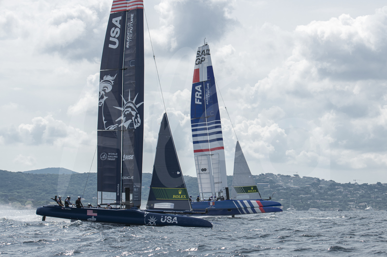 | Description | ST TROPEZ, FRANCE - SEPTEMBER 10: Rome Kirby’s USA and Billy Besson’s France SailGP Teams are competing during practice day of SailGP on Saint-Tropez Harbour on September 10, 2021 in St Tropez, France. (Photo by Olivier Blanchet /Alea) |